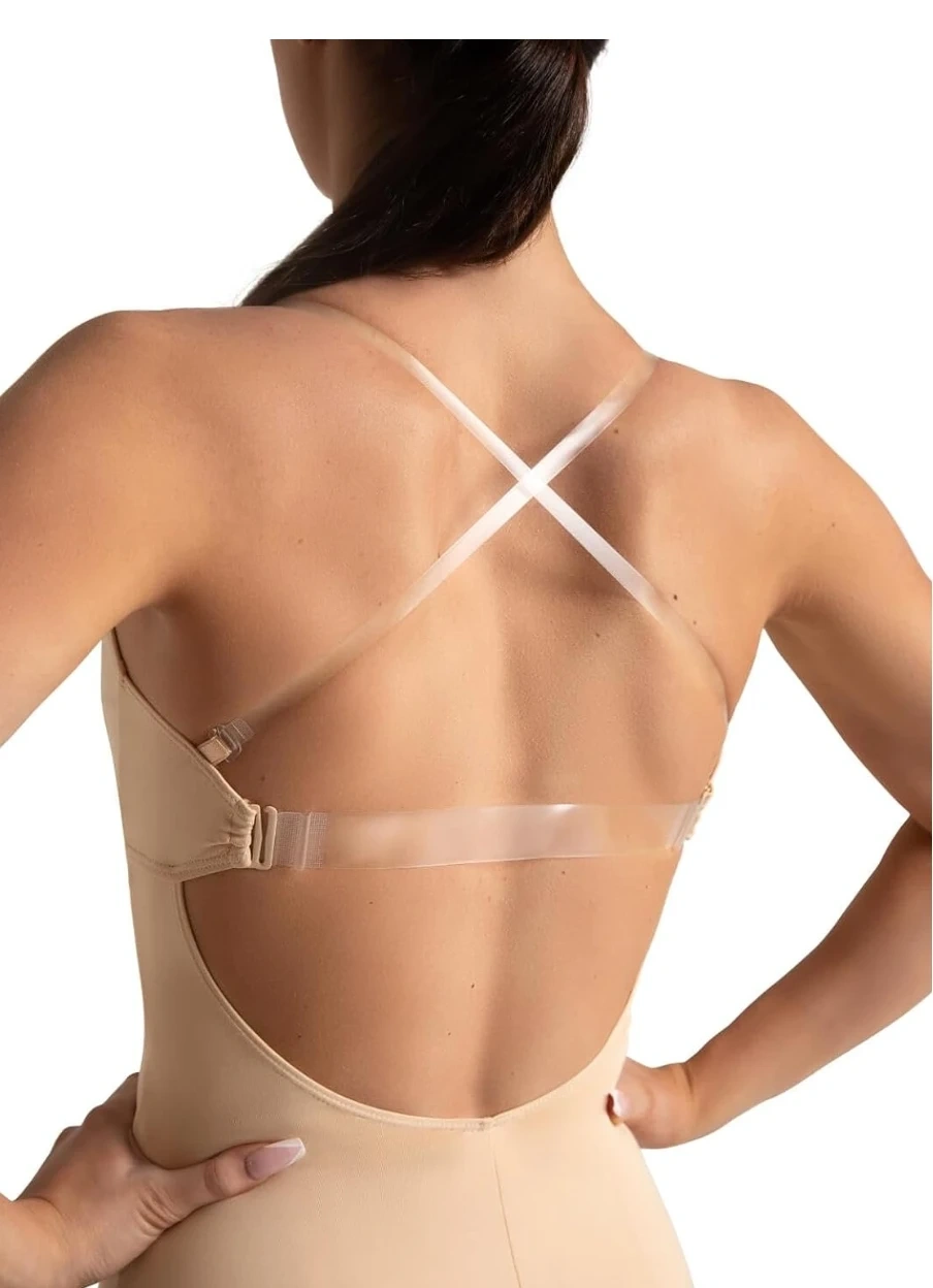Beige Dance Leotard with Clear Straps.