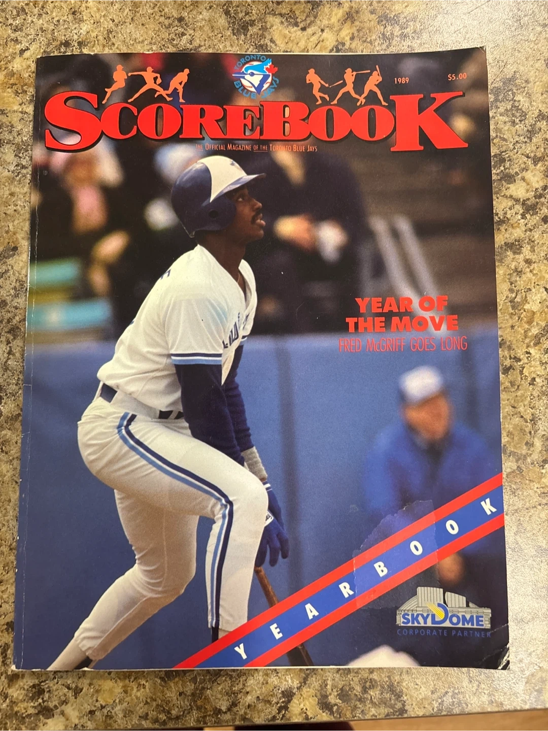This is the official magazine of the Toronto Blue Jays from 1989. It features an article on Fred McGriff titled "Year of the Move". It's the official yearbook.