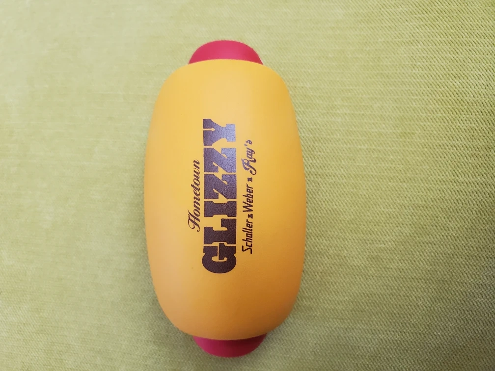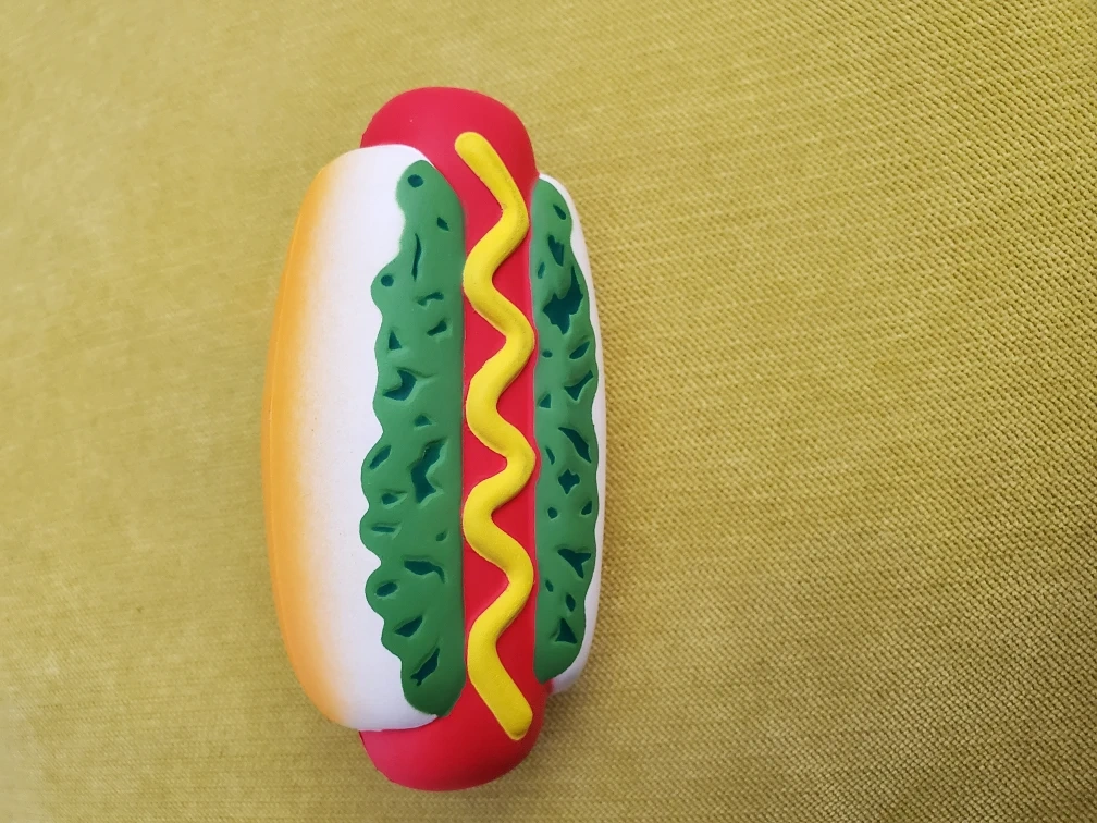 Here is a fun Glizzy hot dog shaped stress toy! It's perfect for relieving stress or just adding a touch of whimsy to your desk. It's in great condition and ready for a new owner.