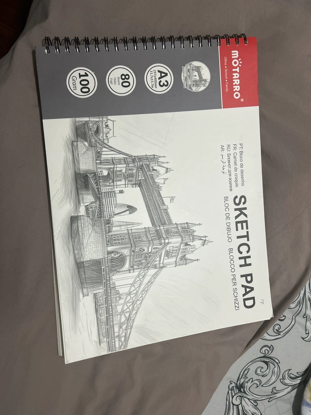 This Mottaro sketch pad is A3 size with 100 gram paper. It comes with 80 sheets. Ideal for artists and students alike! It’s very huge.