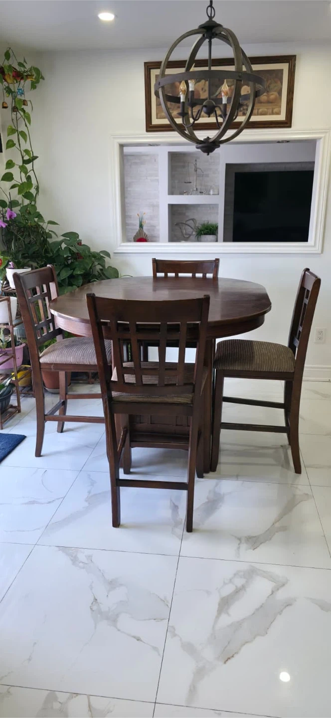 Selling a solid wood dining table with 4 matching chairs.