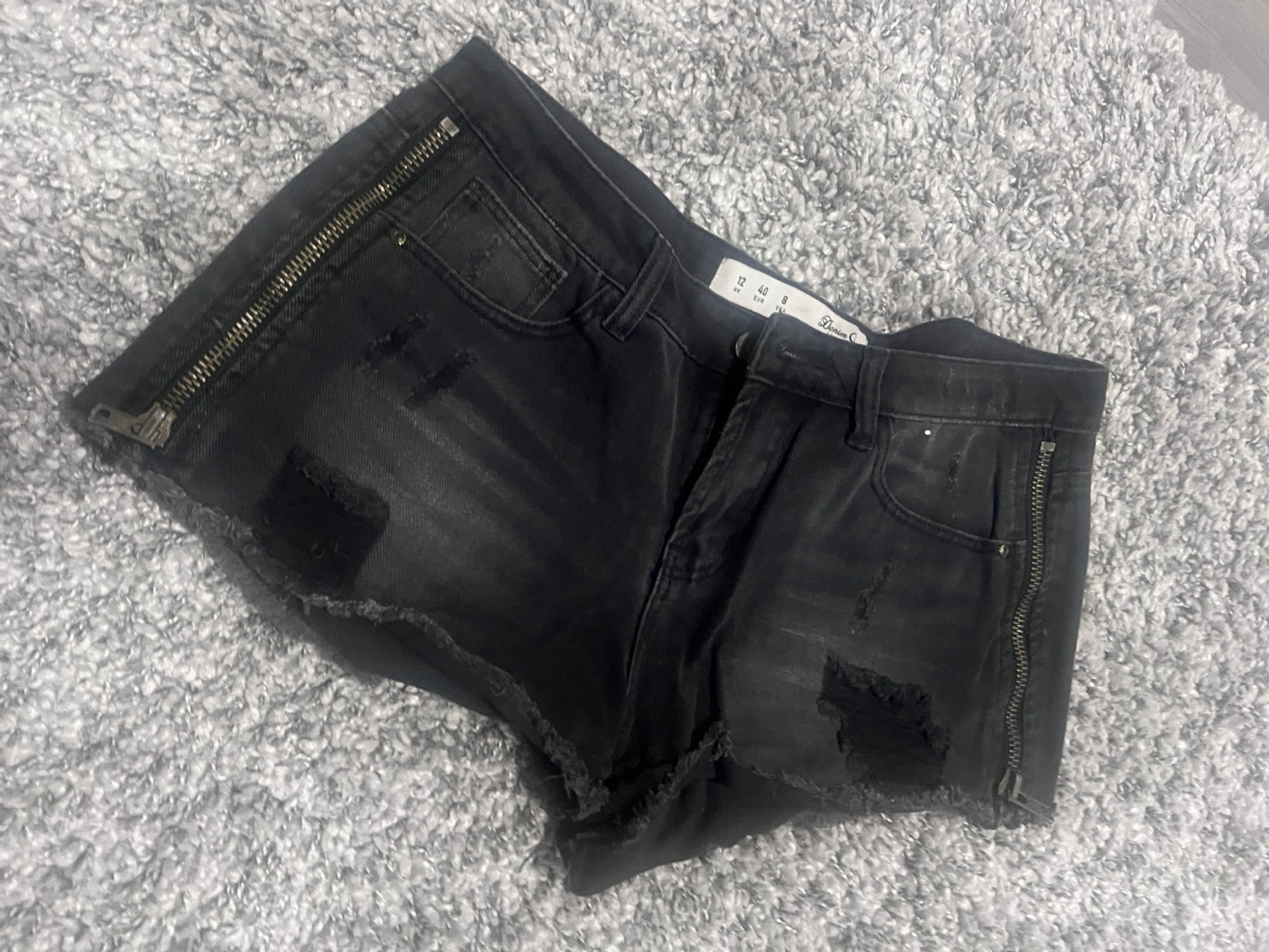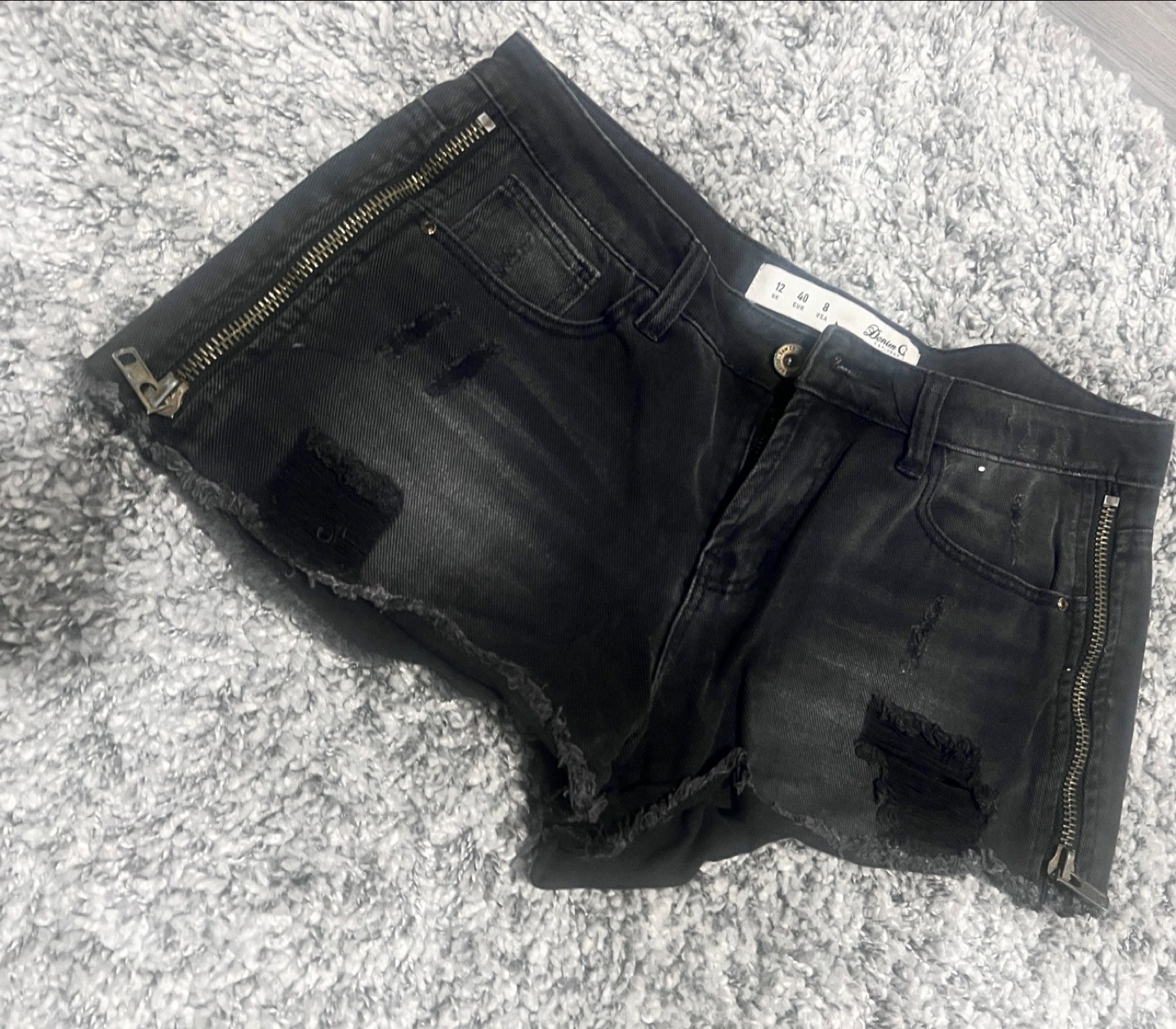 Declutter Sale - Black Distressed Denim Shorts with Side Zips