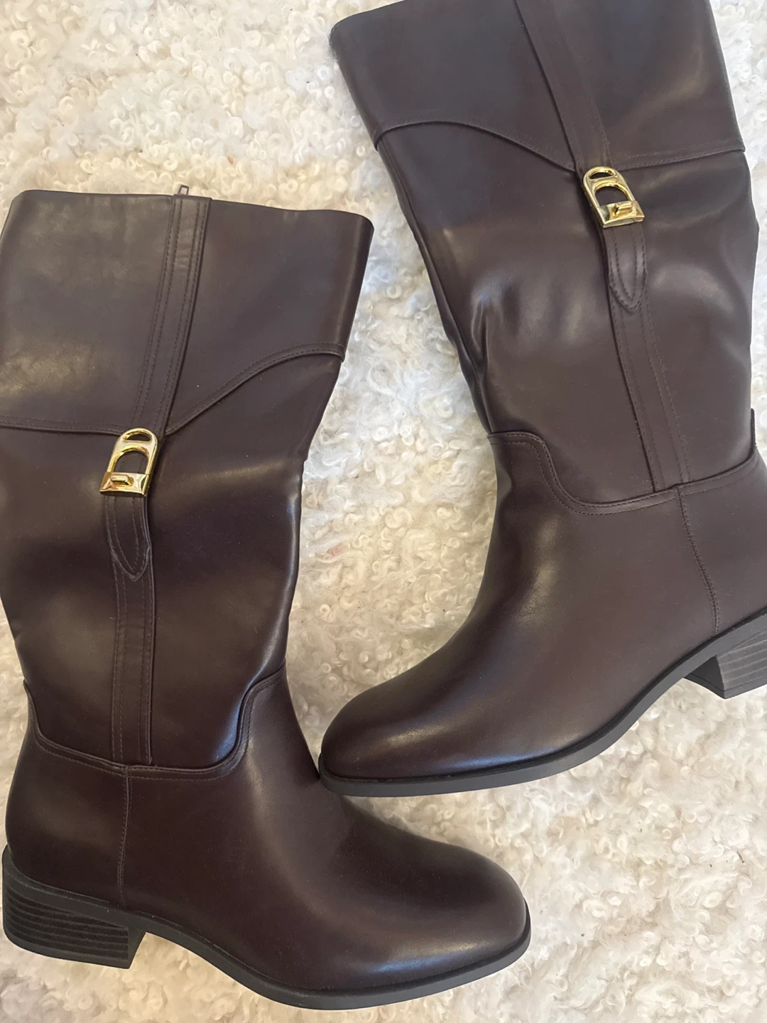 Brand New in the box , women Classic brown knee-high boots, perfect for fall and winter wear. Features a stylish gold buckle detail. Size 10/41