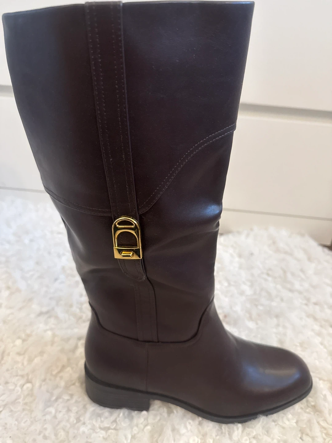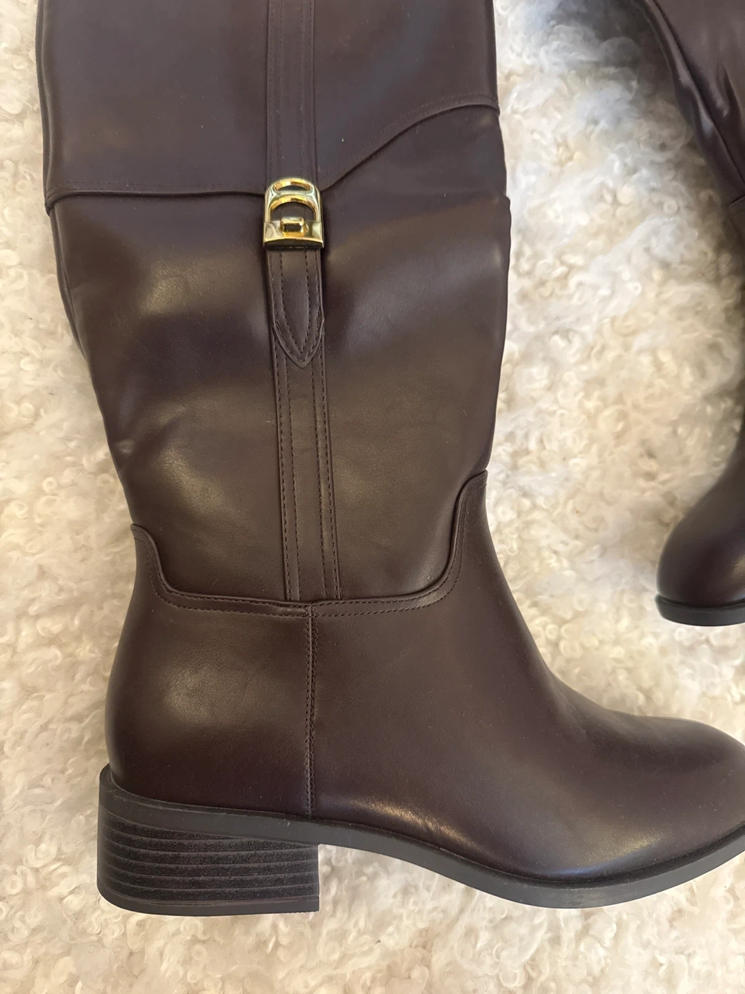 Brand New in the box , women Classic brown knee-high boots, perfect for fall and winter wear. Features a stylish gold buckle detail. Size 10/41