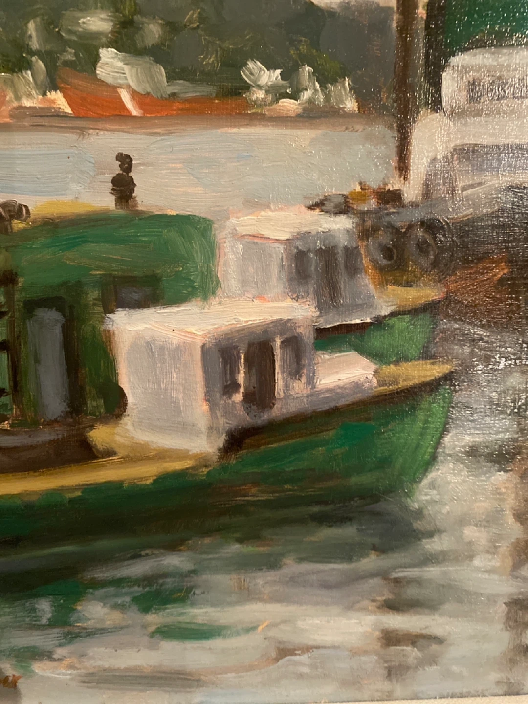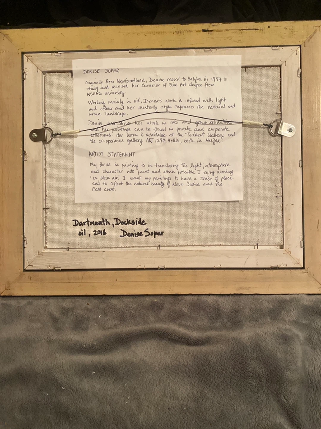 Selling an original oil painting by Denise Soper titled "Dartmouth, Dockside" created in 2016. It captures the natural beauty of Nova Scotia and the East Coast. Denise's work is infused with light and colour. Her paintings can be found in private and corporate collections and is available at the Teichert Gallery and the co-operative gallery ART 1274 Hollis, both in Halifax
