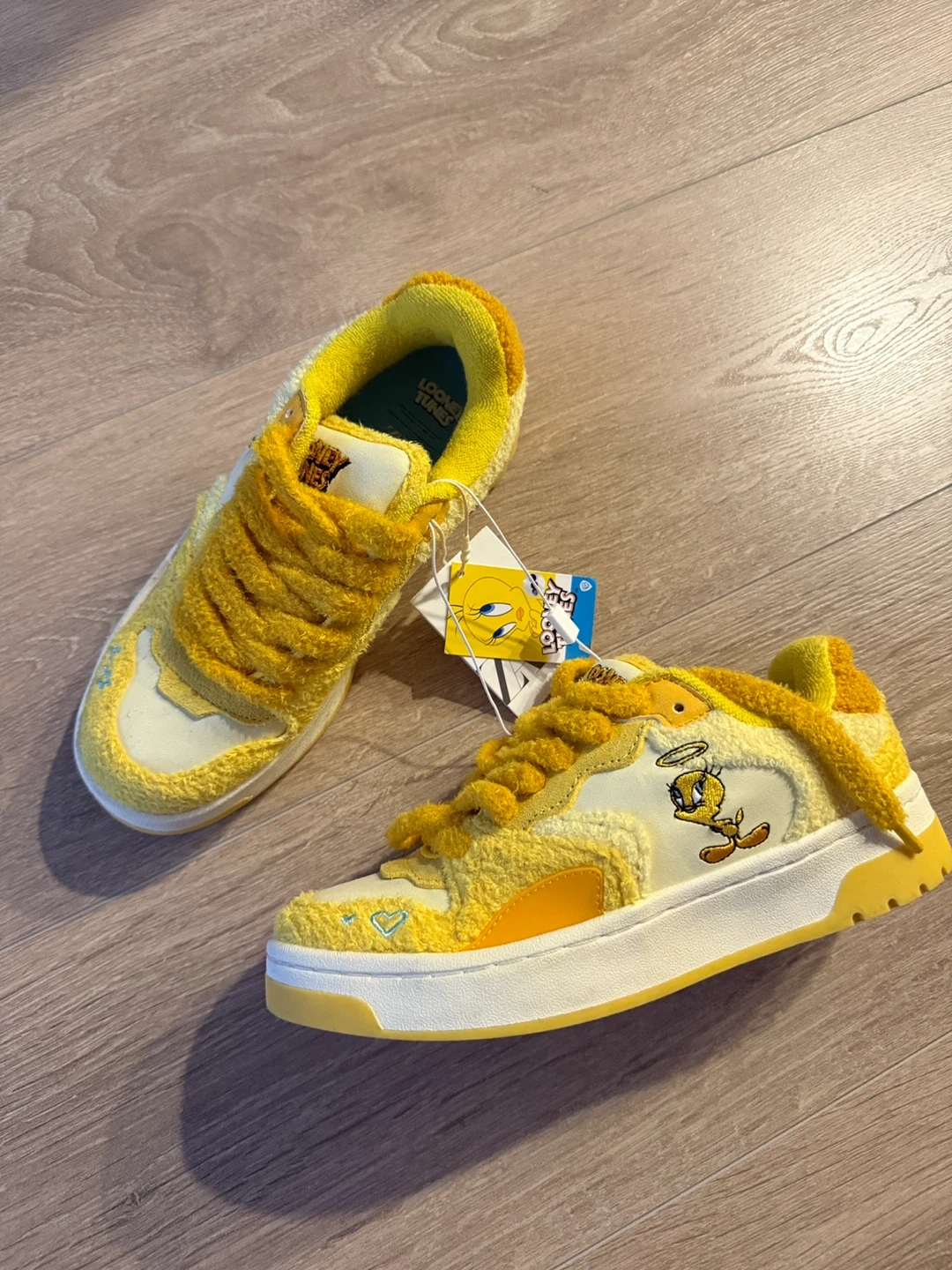 Super cute Zara x Looney Tunes Tweety sneakers in a bright yellow colour! They're a size 35. Perfect for adding a pop of fun to any outfit!