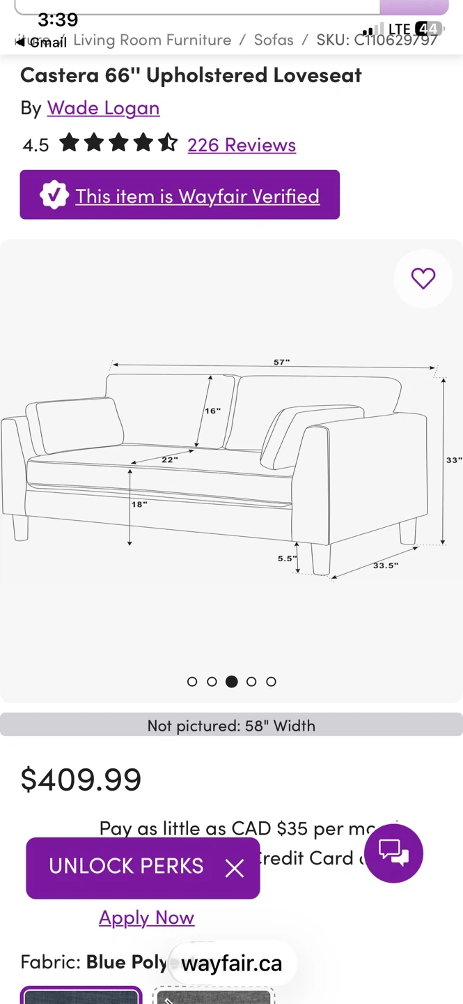 Wayfair love seat / couch