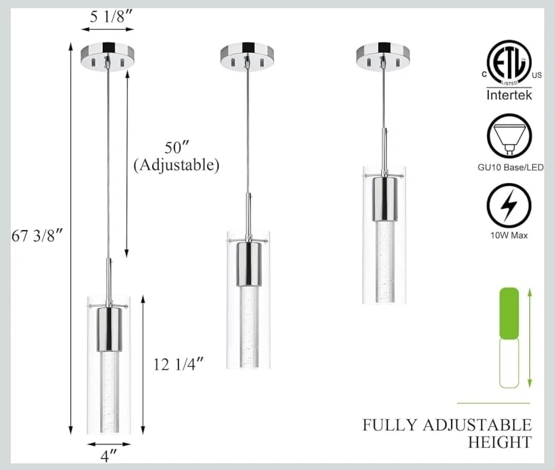 Add a touch of elegance to your space with this beautiful Bubble Crystal pendant light! It features a clear crystal design with delicate bubbles inside.