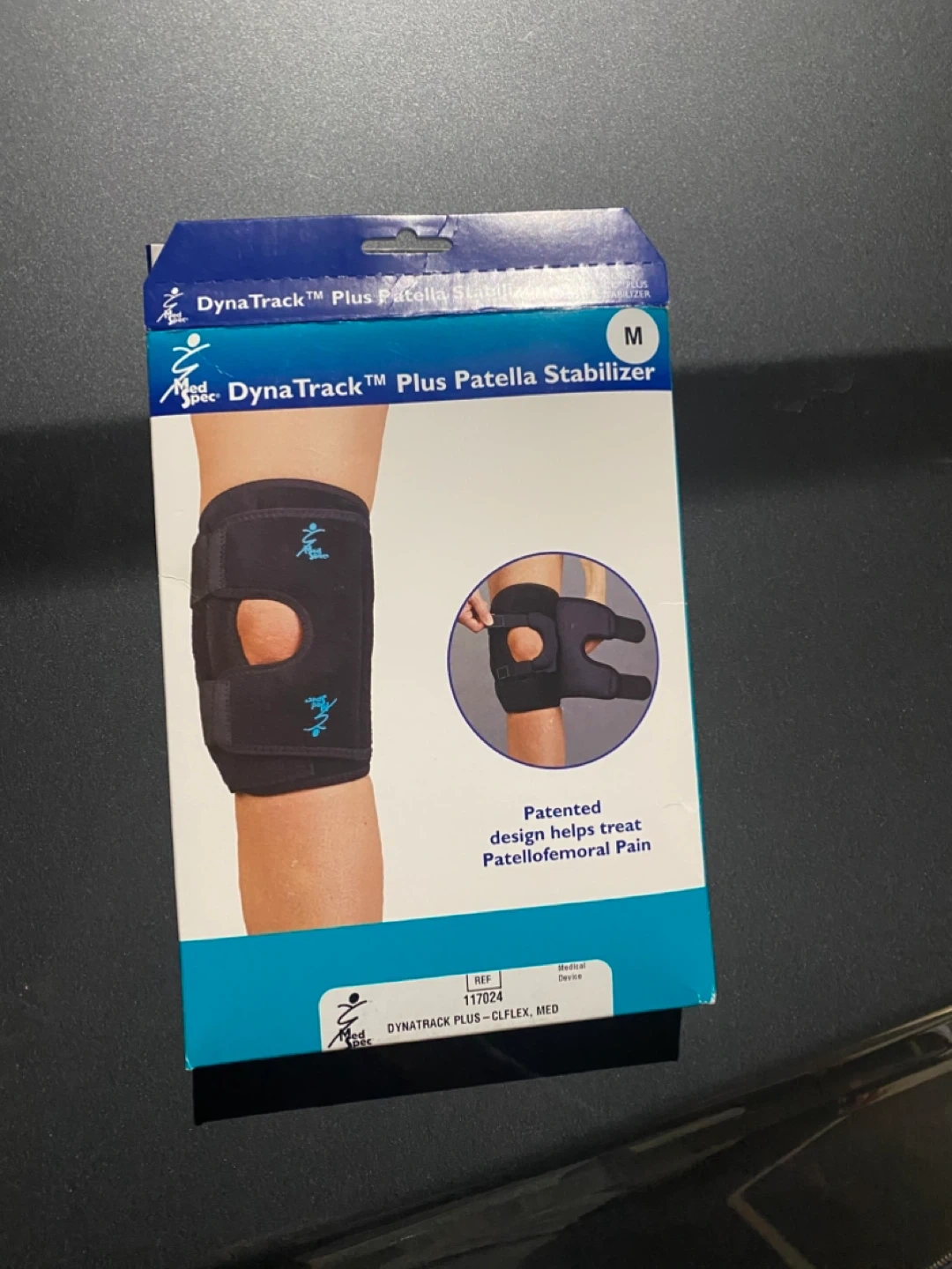 New Med Spec DynaTrack Plus Patella Stabilizer. This patented design helps treat patellofemoral pain. It's made with neoprene. The size is medium and the knee circumference is 14"-16". I have two available. $100 for one or $180 for two.