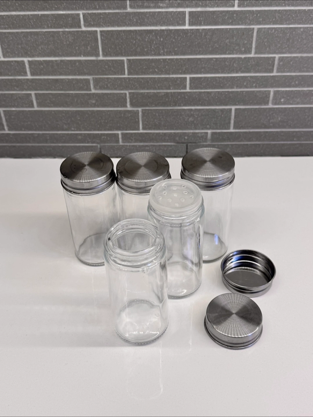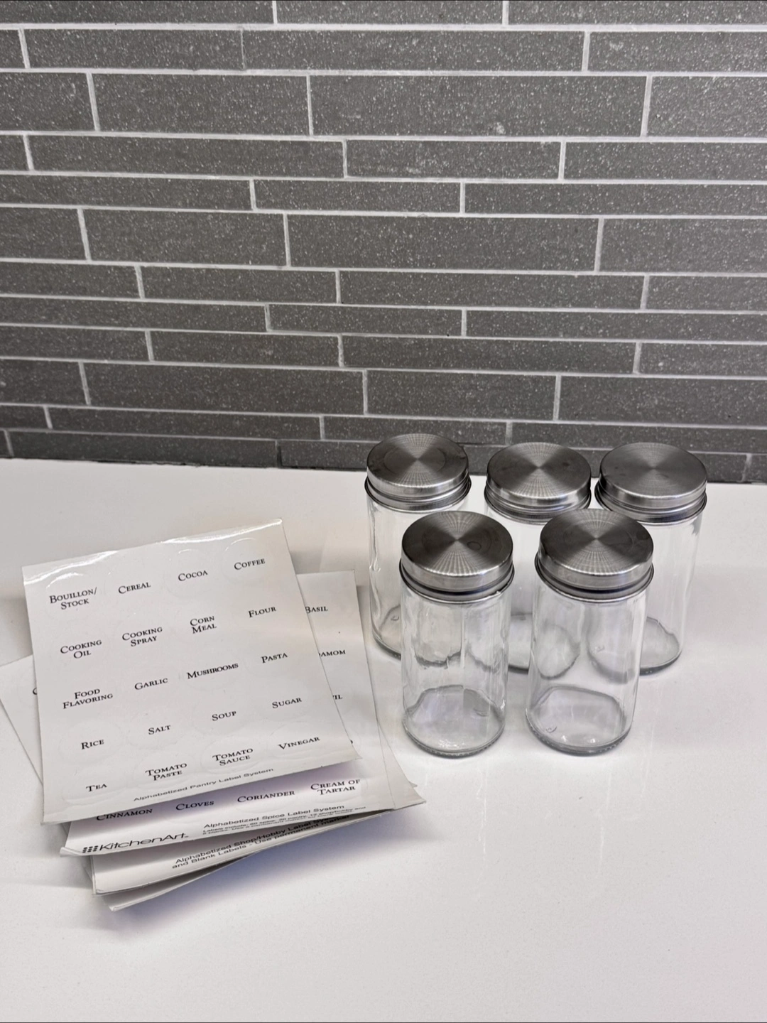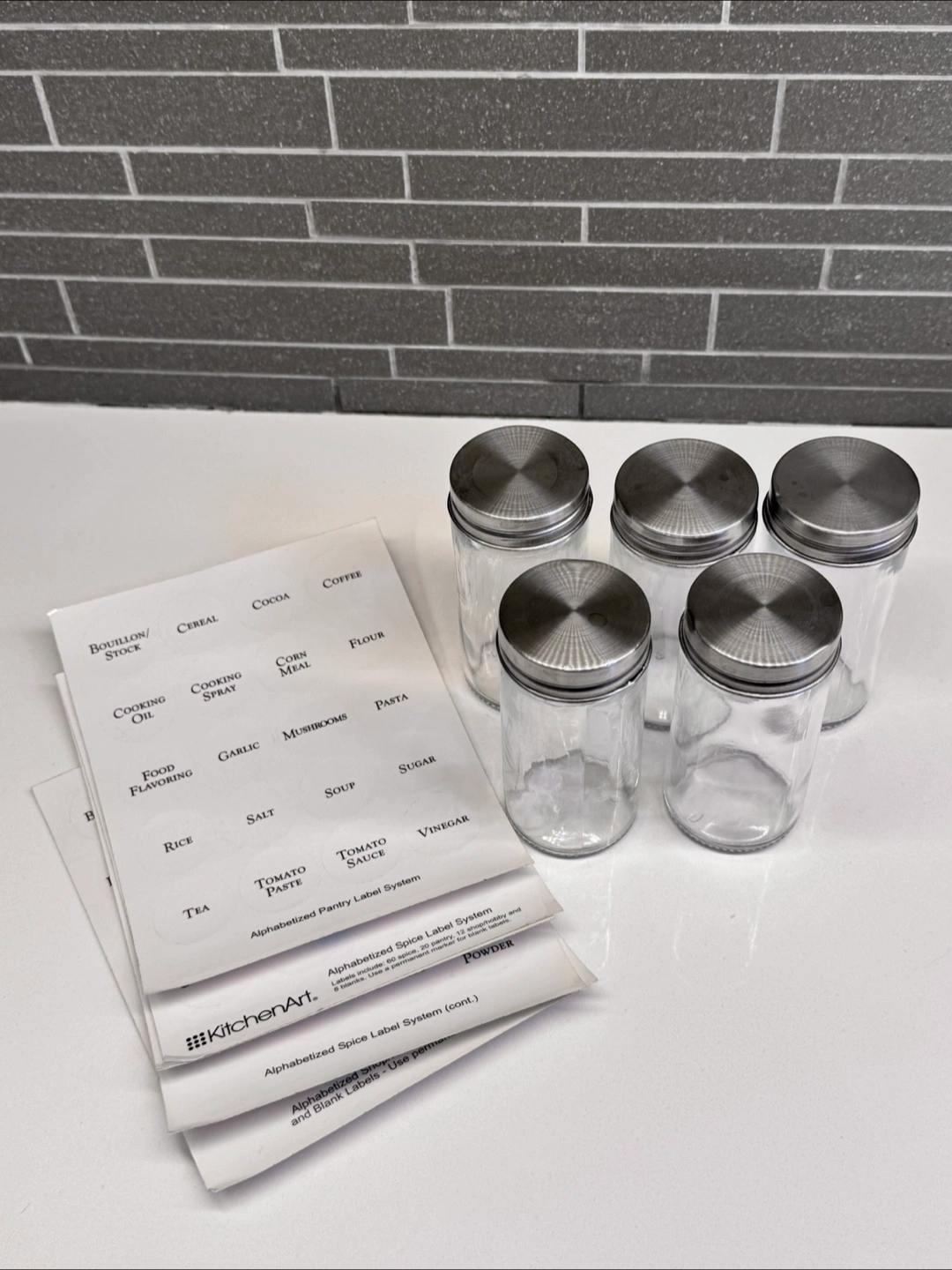 They come with metal lids and some labels to keep your spices organized. Perfect for any kitchen!