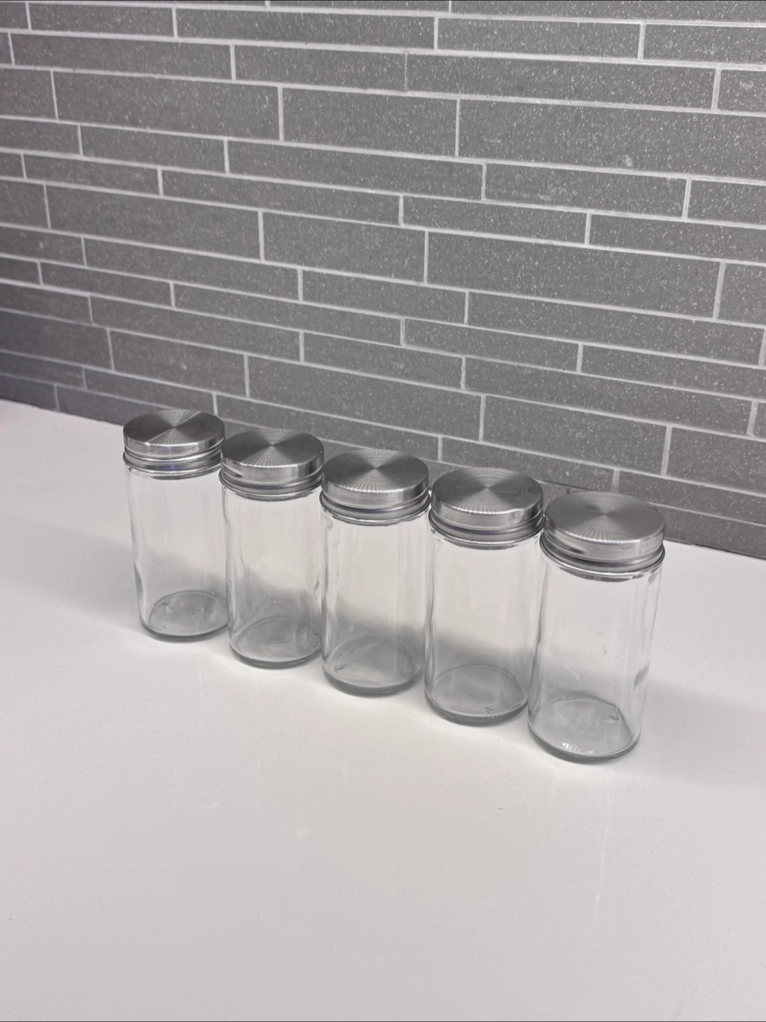 Set of five glass spice jars + Free labels
