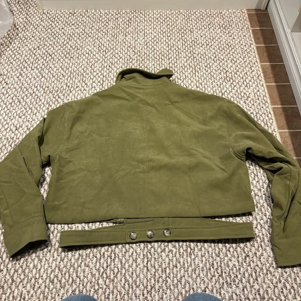 Chic crop utility jacket with button front. Features dual chest pockets. Perfect for everyday style. Size XL Pit to pit 25.5”