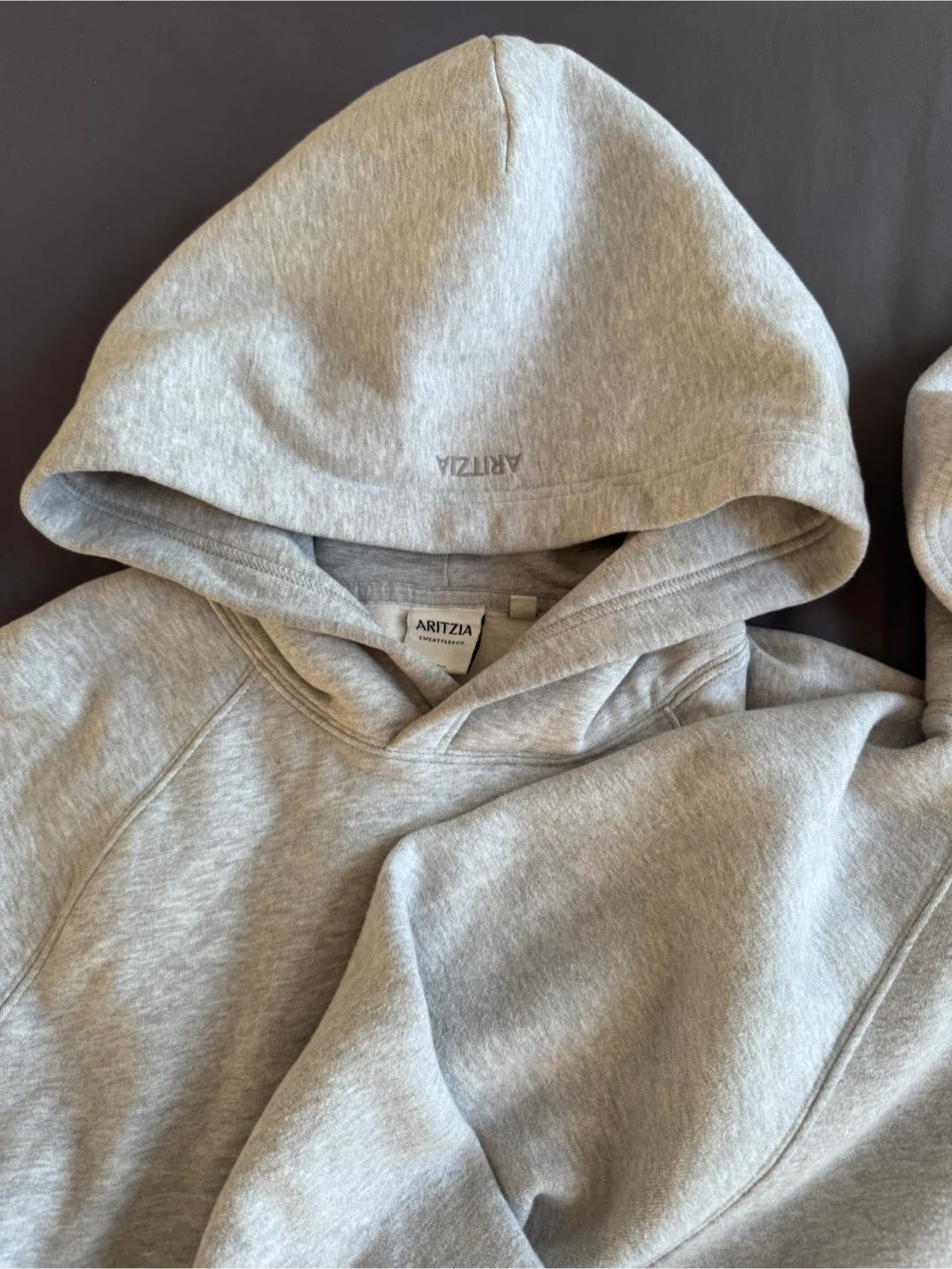 Two Aritzia grey SWEATFLEECE hoodies. They're size medium and made of a soft cotton blend. Perfect for cozy 1 is $60