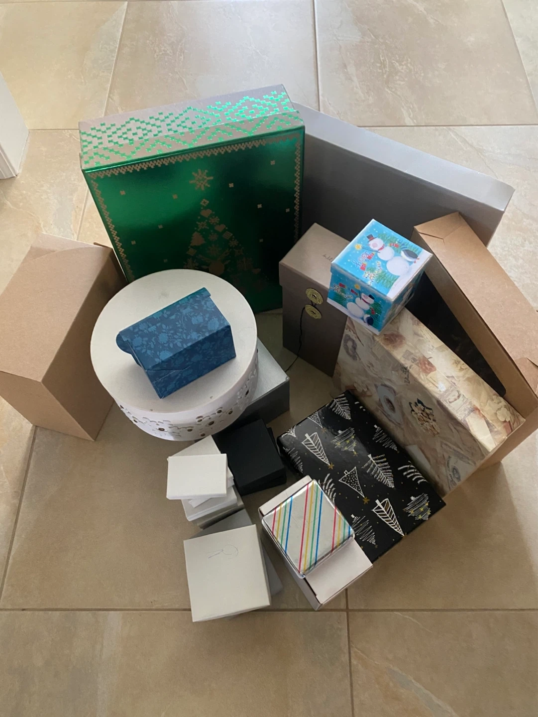 A collection practically new 21 various gift boxes in different sizes and designs. Perfect for wrapping presents for any occasion!