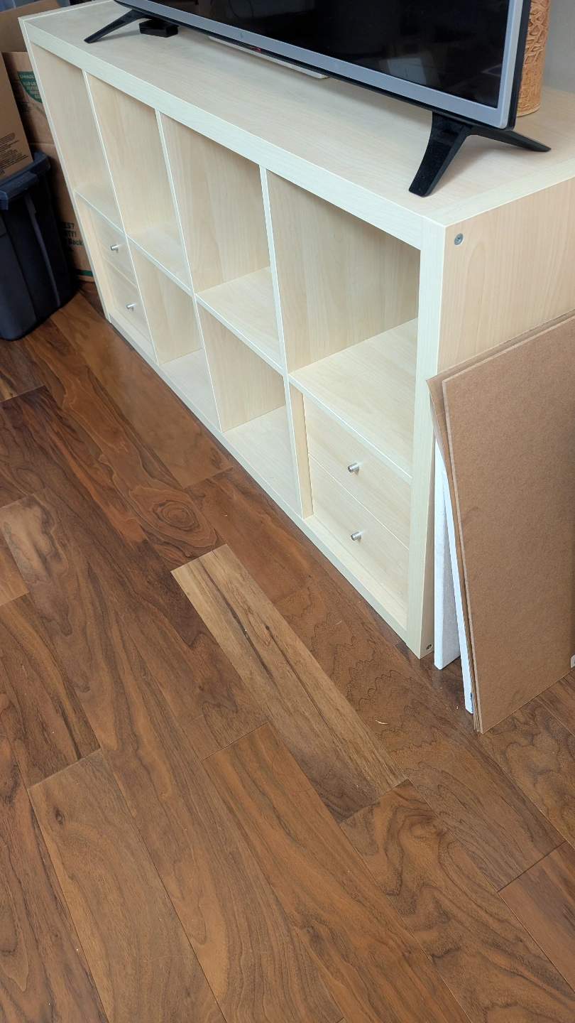 IKEA Kallax 8-cube shelving unit with 4 drawers
