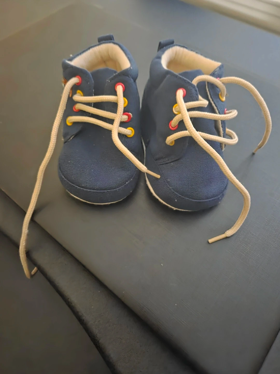 These cute navy blue baby booties feature a classic lace-up design. They're made of durable fabric with a comfortable lining. Perfect for keeping little feet warm and stylish!