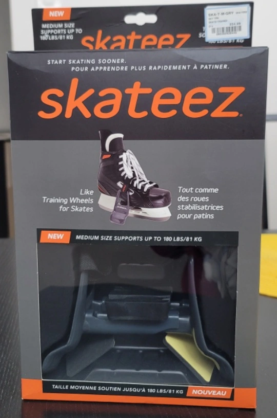 New Skatéez skate training aids. Medium size supports up to 180 lbs/81 kg. Designed to help beginners learn to skate. Easy to install. Includes rubber wedges.