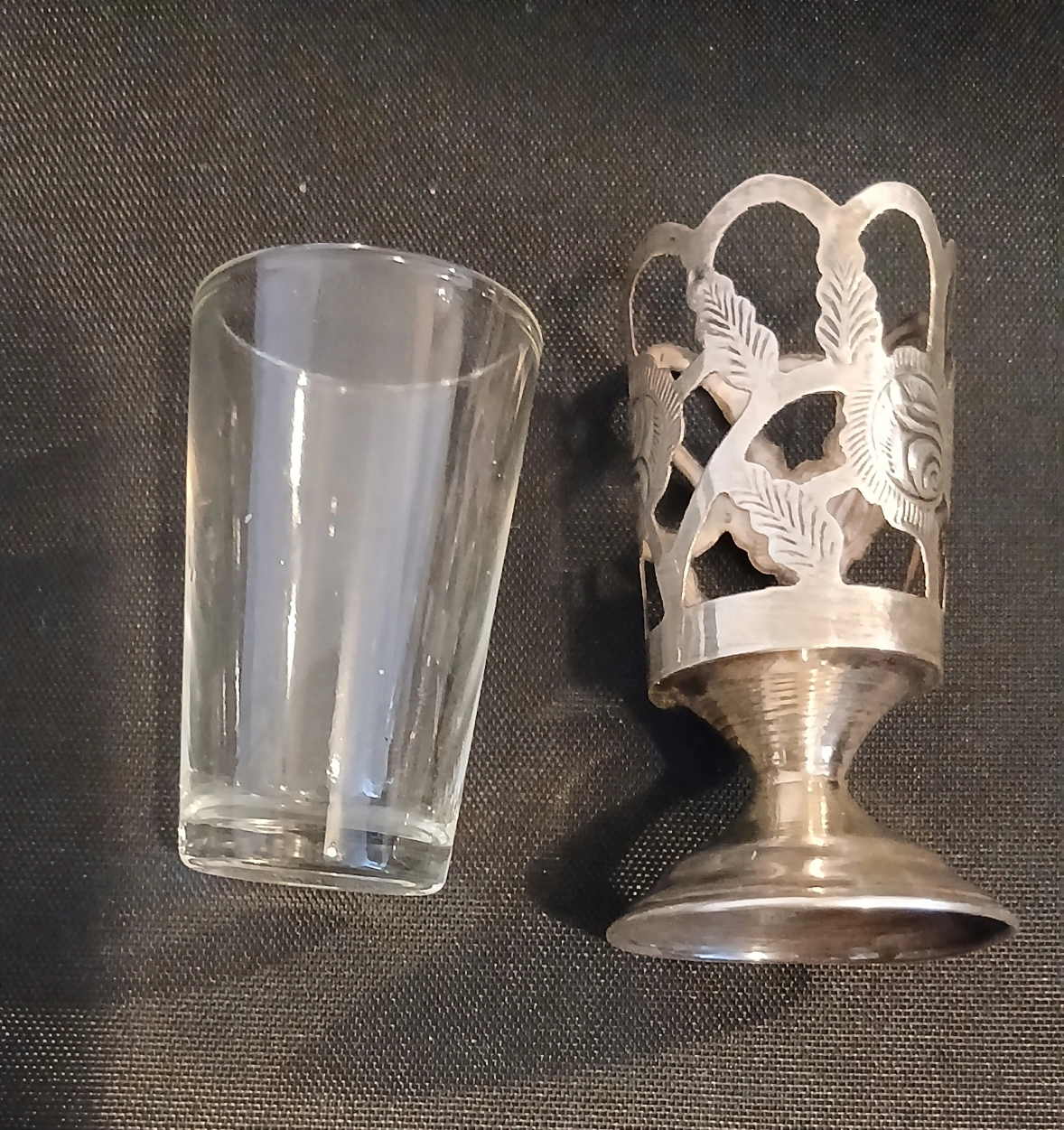 The decorative holder is typically made of .925 sterling silver. Many of these vintage items are stamped with "925" or on the base.