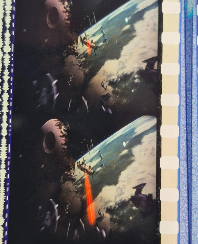 Seen here are 35mm theatrical trailer Film Cells for Star Wars Return of the Jedi re-release 1997 Special Edition. This is a bundle featuring various scenes from the film. This bundle is $50. Pop Culture Collectibles.