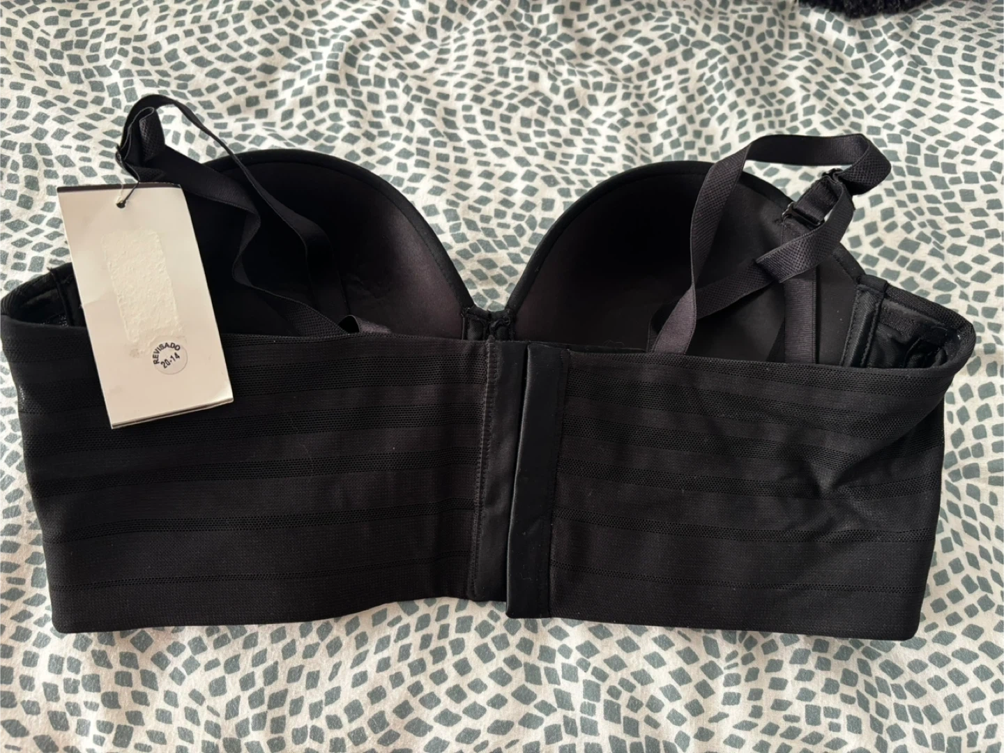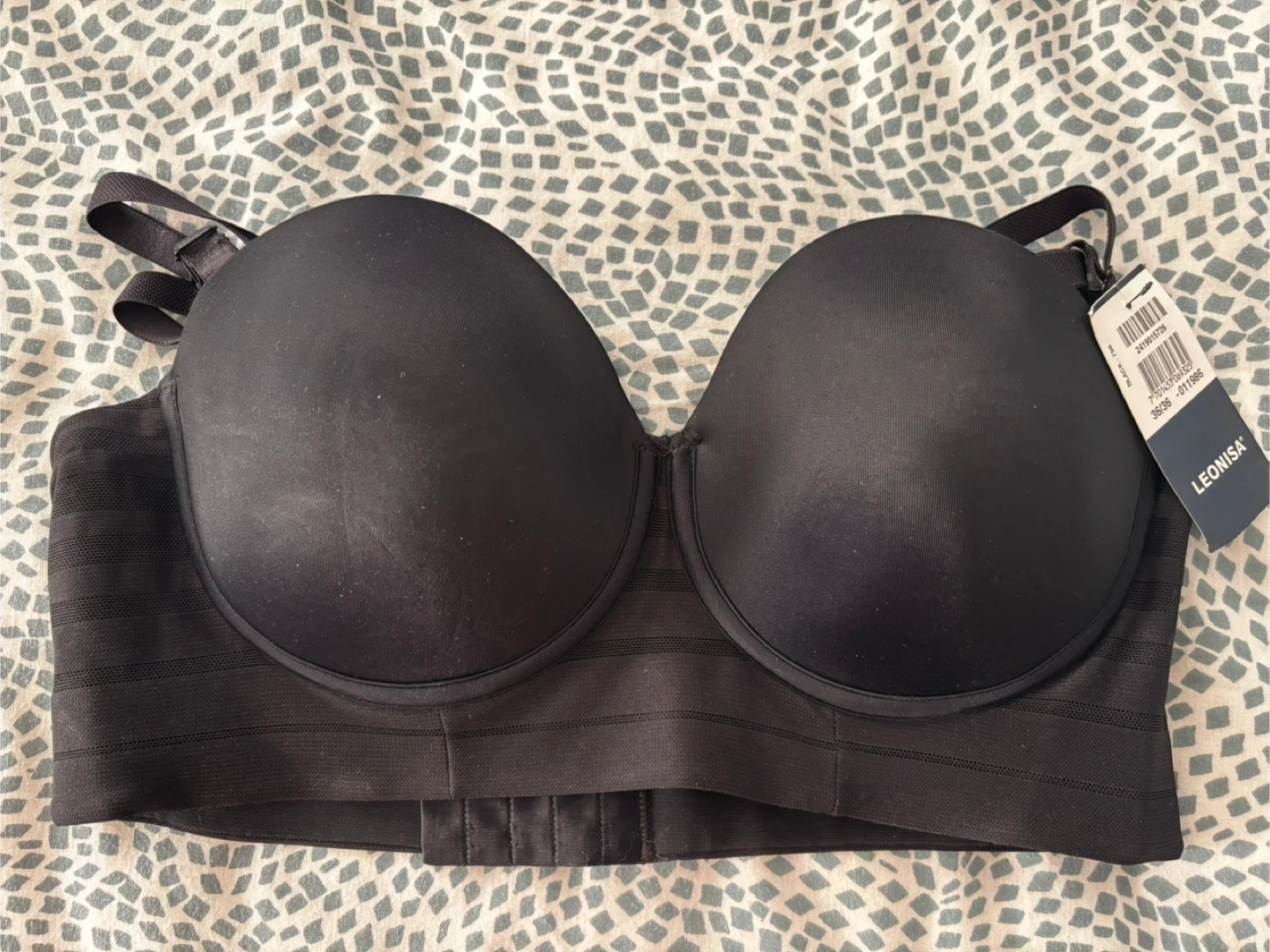 New LEONISA strapless bra in black. Size 36/36. Features a structured design with adjustable straps included. It's made of comfortable fabric for shape & support. It also offers extra support for your back.