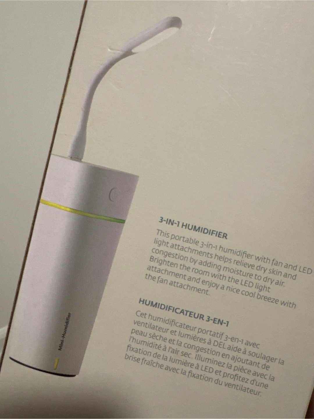 This portable 3-in-1 humidifier helps relieve dry skin and congestion with its fan and LED light attachments. Brighten the room with the LED light attachment and enjoy a cool breeze with the fan attachment. It's a convenient way to add moisture to your air!