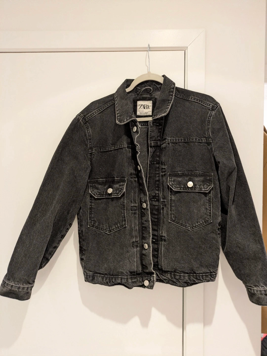 Buy & SellZara Black Denim women Jacket size MZara Black Denim women Jacket size M$15This is a black denim jacket from Zara. It's a size medium, made in Bangladesh. Features two chest pockets and button closure.ConditionGoodSizeMBrandZaraWHERE TO MEET55 Mercer stView MapSELLERverifiedTammyEntertainment District51160 reviews0 chats·2 favorites·21 viewsSEND CHAT TO SELLERHi Tammy! I’m interested in your listing.Hi Tammy! I’m interested in your listing.Get the Karrot app to chatSign In to chat