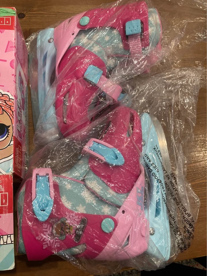 Adorable LOL Surprise ice skates in pink and blue, perfect for kids learning to skate.
