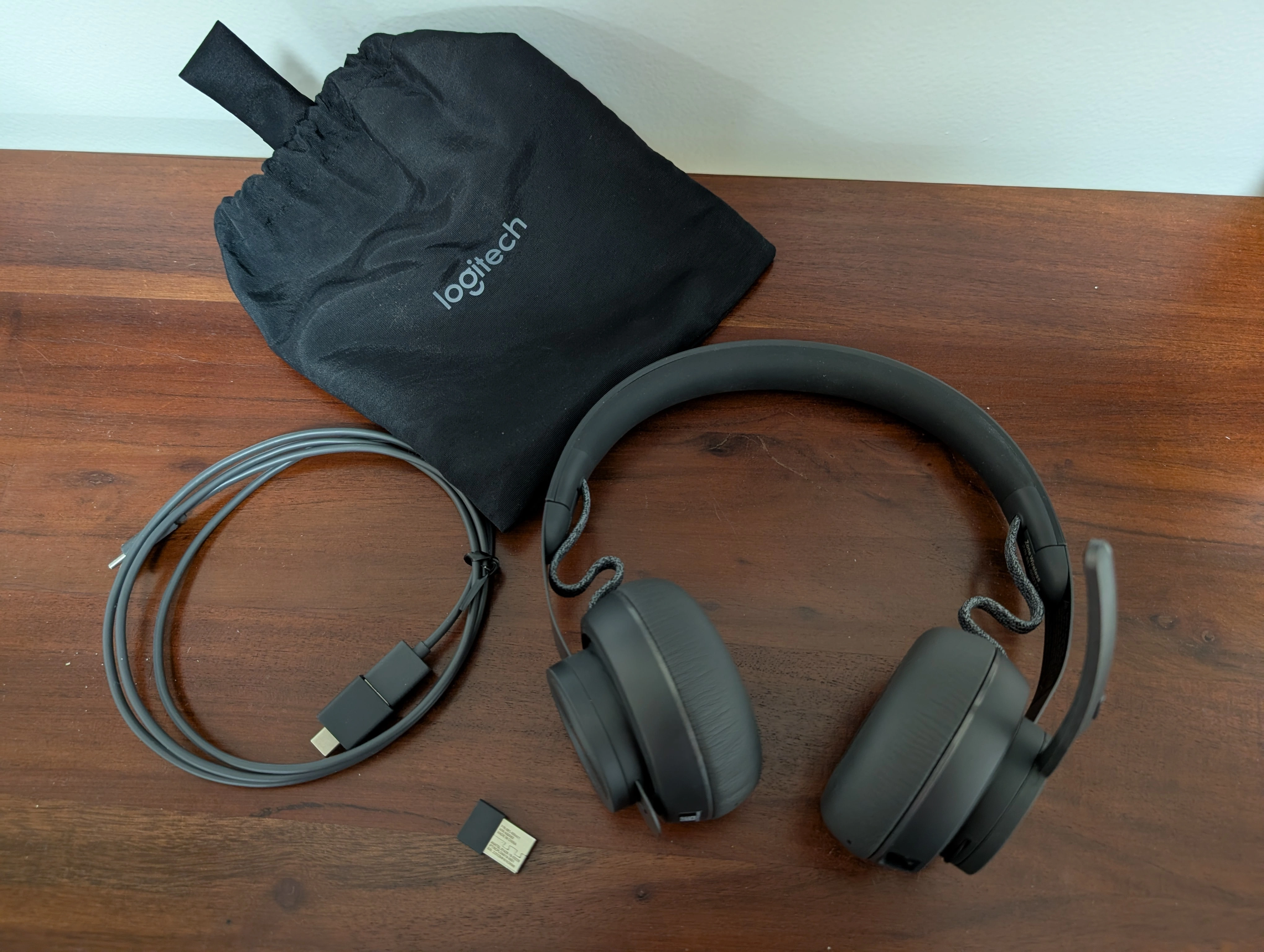 Selling a Logitech Wireless Bluetooth Headset with Noise-Canceling Microphone, in black! It comes with its original carrying pouch and a USB-C charging cable. Perfect for work or leisure, these headphones are super lightweight and comfortable for all-day wear. Brand new, never been used.