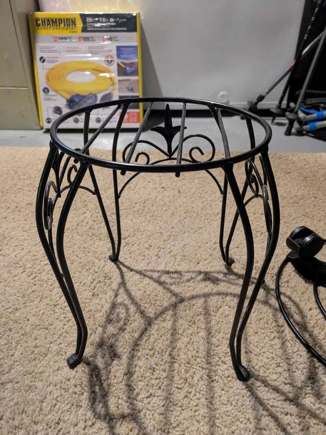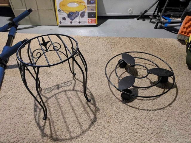 This used plant stand is perfect for displaying your favourite potted plant, and is constructed with a durable metal that has an ornate design. The wheeled plant stand is great for moving plants around with ease. Cash accepted.