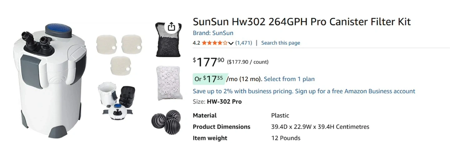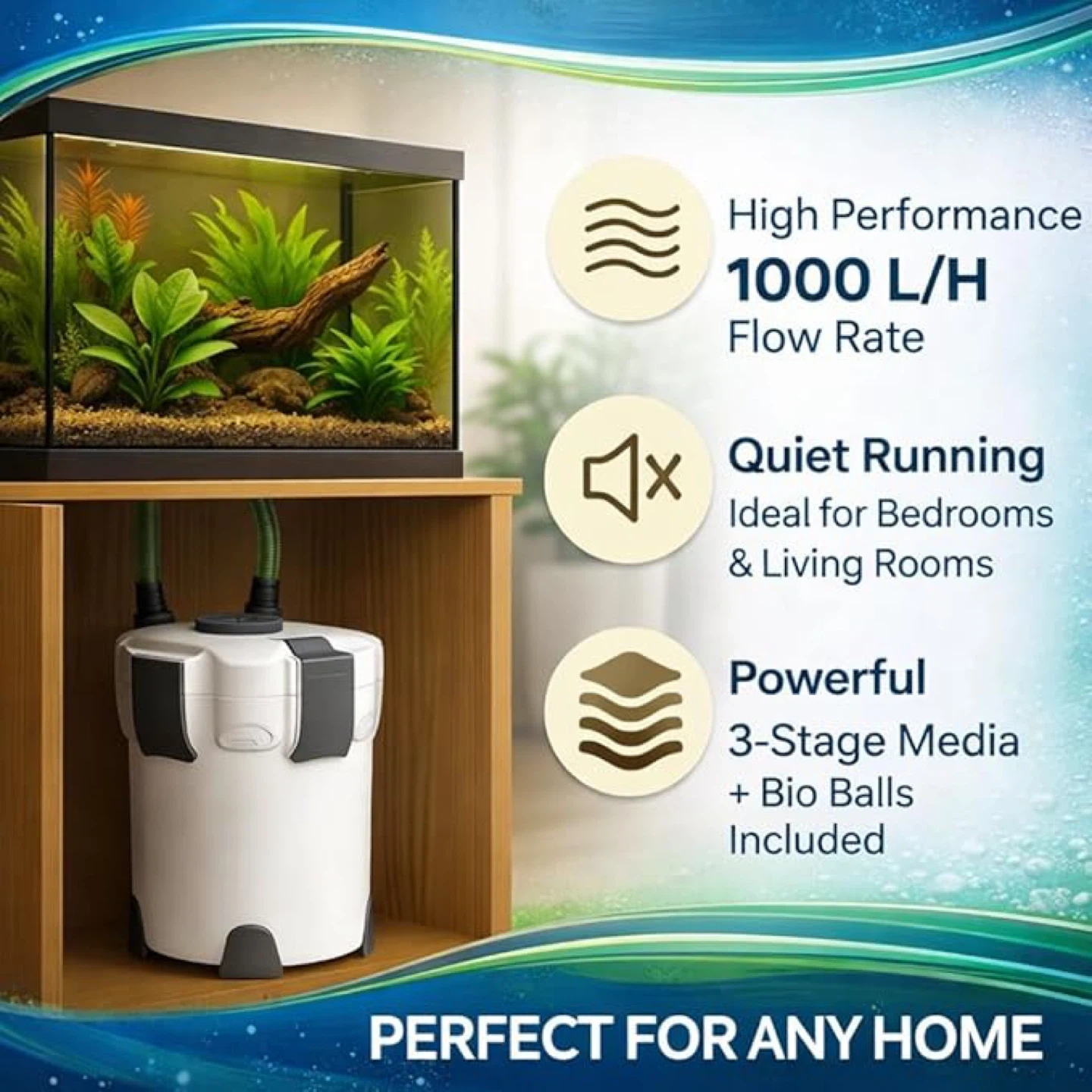 Powerful filtration with 264 GPH flow rate – suitable for aquariums up to 75 gallons