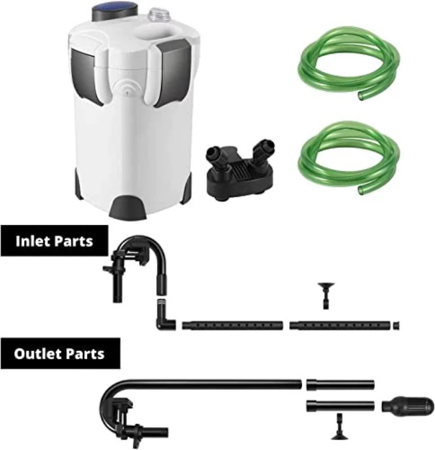 Complete setup kit includes hoses, intake/outlet parts, and all necessary components