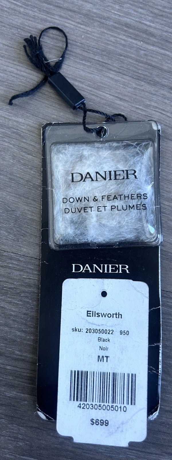 This is a Danier men's winter parka jacket. The Canadian fashion brand Danier specializes in high-quality outerwear. Brand: Danier Type: Men's winter parka jacket. The brand is known for its genuine lamb leather and high-quality wools, with many winter jackets featuring down and feather insulation. Features: The jacket appears to have a black shell, a fur-trimmed hood, and distinctive leather patches on the elbows. Danier parkas often feature details like interior shoulder straps, storm cuffs, and multiple pockets for functionality in cold weather. Condition: New Size: Medium Cashless payment: Yes Cash accepted: Yes