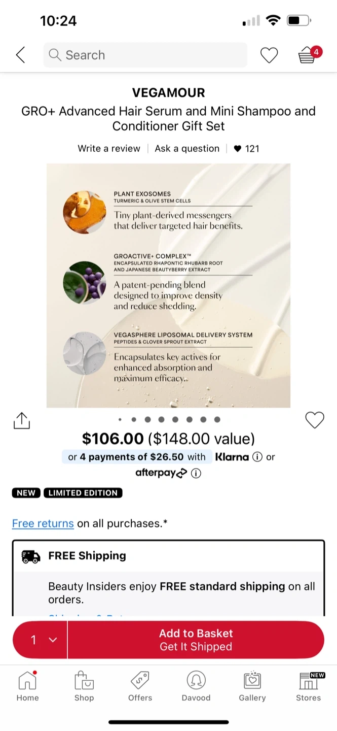This mini VEGAMOUR includes the GRO+ Advanced Balancing Shampoo and Conditioner. It's formulated with plant exosomes and VEGASPHERE liposomal delivery system. Based on a 120-day study, it shows up to 95% reduction in shedding.
