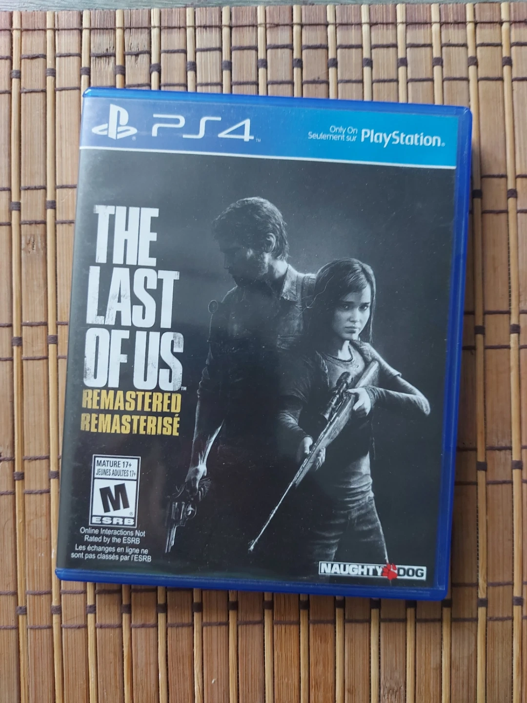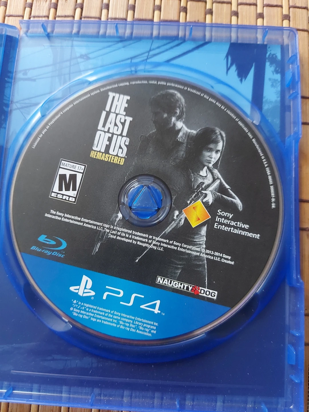 This is The Last of Us Remastered for PlayStation 4. It's a Blu-Ray disc game. The game is rated M for Mature.