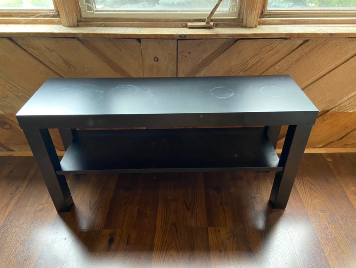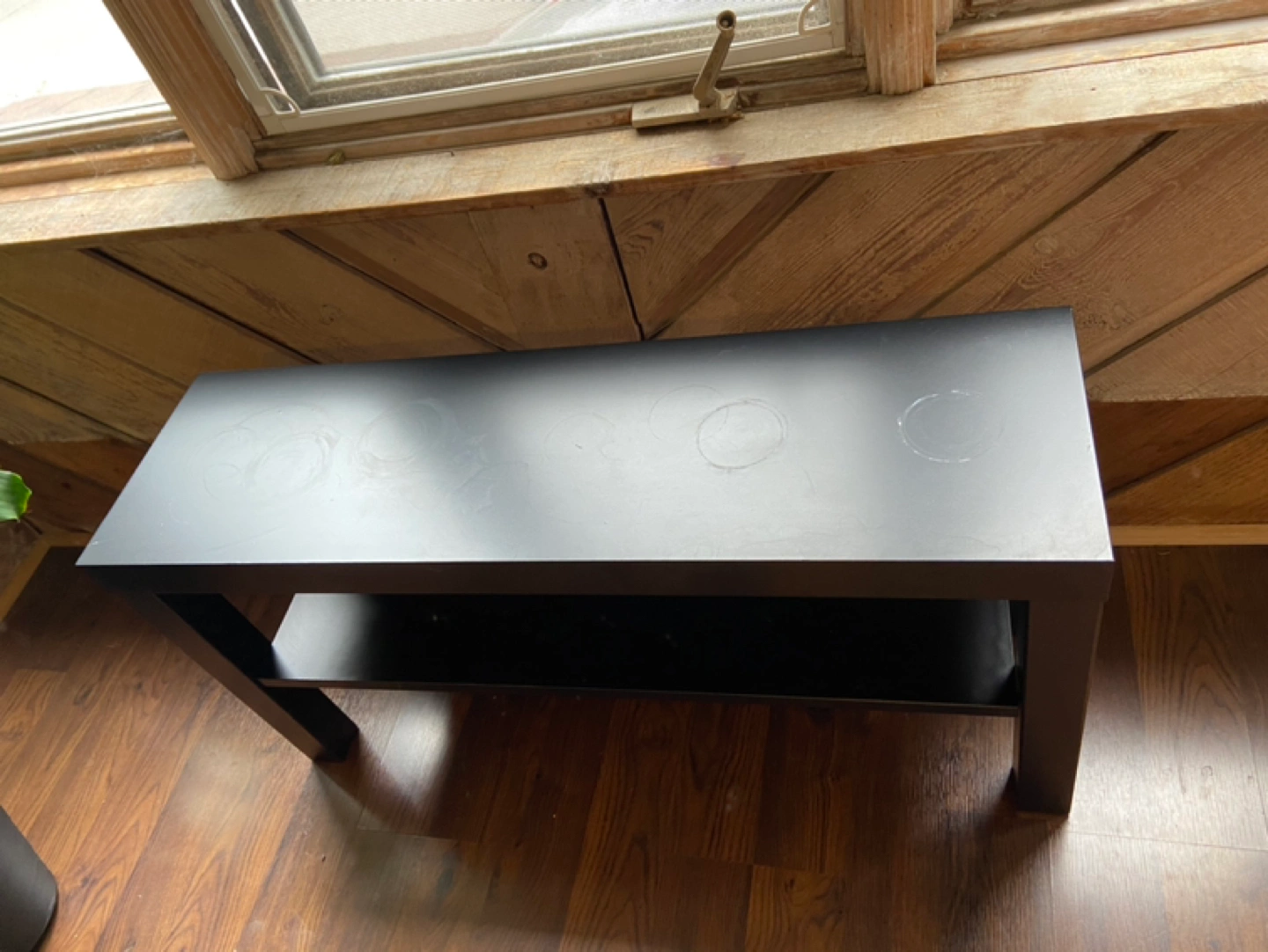 Smaller LACK Ikea Coffee table 35x22x18" (90x55 cm) - selling for $8 - was used as a plant stand and has water damage.