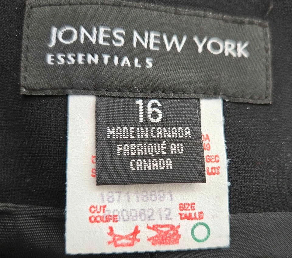 Jones New York lined black pencil skirt with side zipper and back pleat. Stylish and wearable for all occasions. Perfect for your capsule wardrobe! Like new. Size 16. Pickup in Lakeview in S.W.