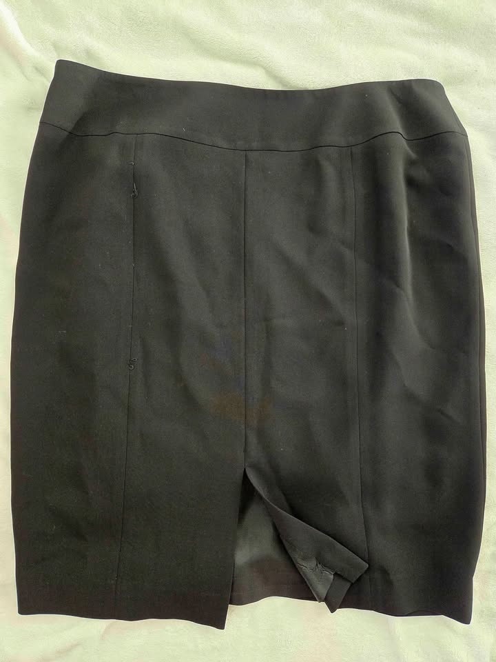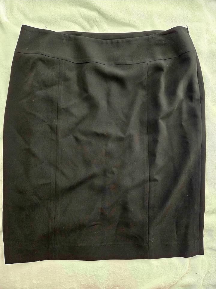 Jones New York lined black pencil skirt with side zipper and back pleat. Stylish and wearable for all occasions. Perfect for your capsule wardrobe! Like new. Size 16. Pickup in Lakeview in S.W.