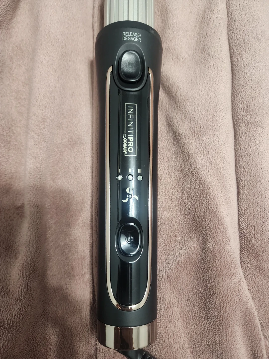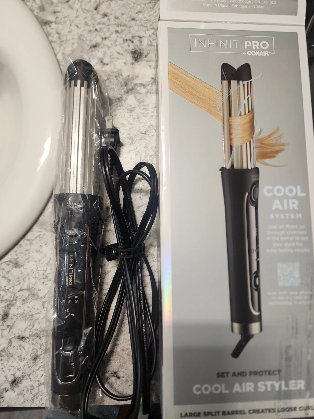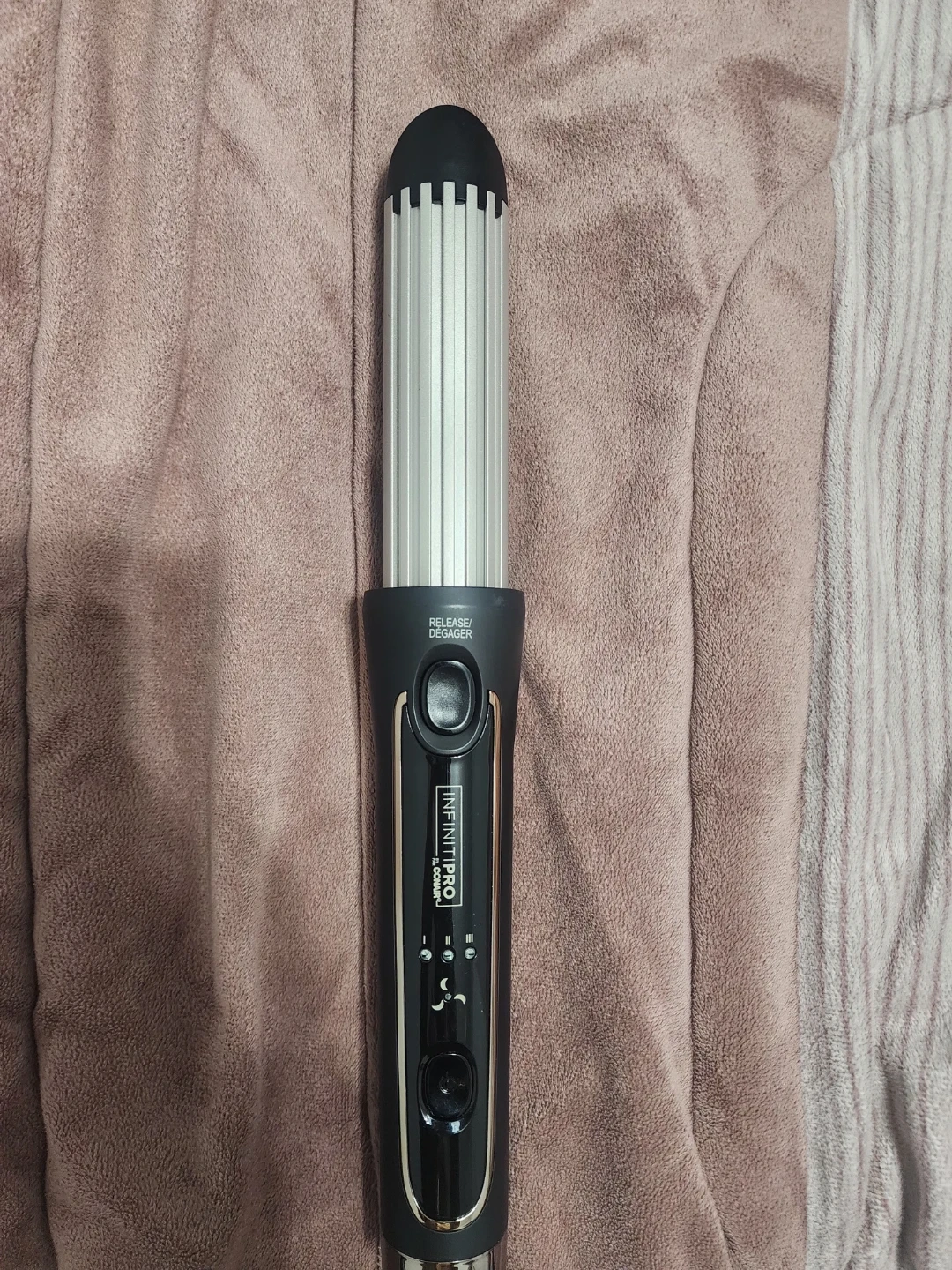 Conair InfinitiPro cool air styler with a large split barrel. It's designed to set and protect your style. This styler helps create loose waves.