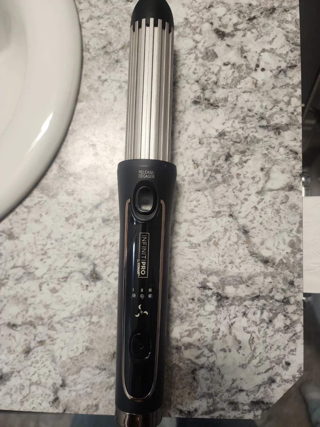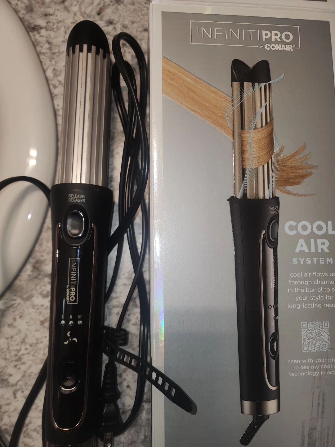Conair InfinitiPro cool air styler with a large split barrel. It's designed to set and protect your style. This styler helps create loose waves.