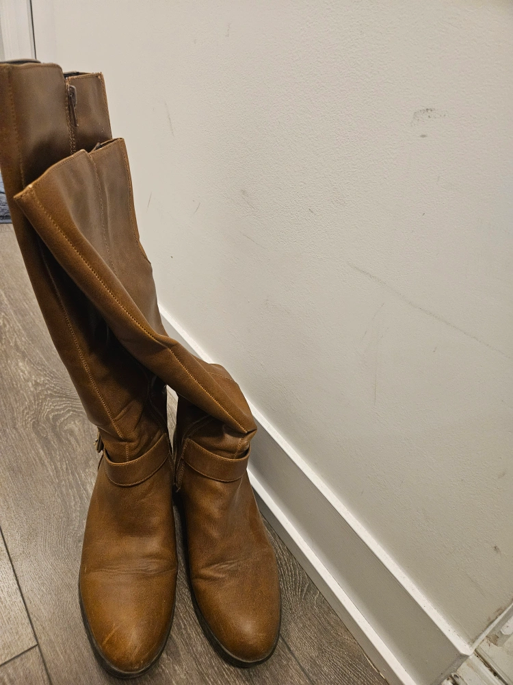 Used Aldo tall boots in brown. They run a bit small, so it should be ideal for UK size 6 or USA 8.