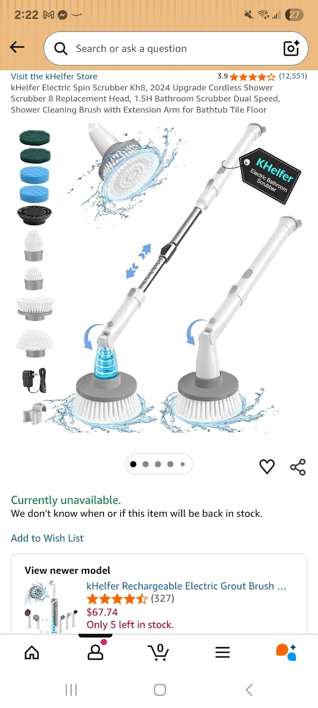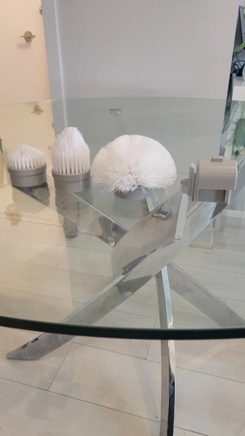 This is an electric spin scrubber designed for cleaning tasks. It comes with multiple brush heads for different surfaces. It's powered by a 9.0V charger and rated at 10W. This scrubber is useful for tackling tough grime in various areas of your home. Can't find the charger.