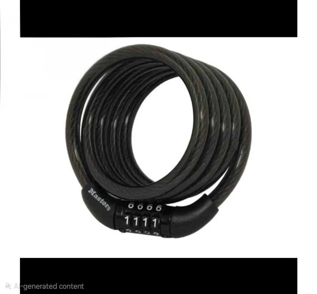 - Keep your bike secure and protected with the Master Lock Bike Lock Cable with Combination, model 8143D. This black cable lock features a durable 6mm braided steel cable that resists cutting and sawing while providing flexibility for easy use. Measuring 4 feet long, it’s perfect for locking bicycles, scooters, gates, and other outdoor equipment. The preset 4-digit combination eliminates the need for keys, offering convenience and quick access. Compact and lightweight, this cable lock is ideal for everyday riders who need reliable security and simple operation for peace of mind wherever they go.