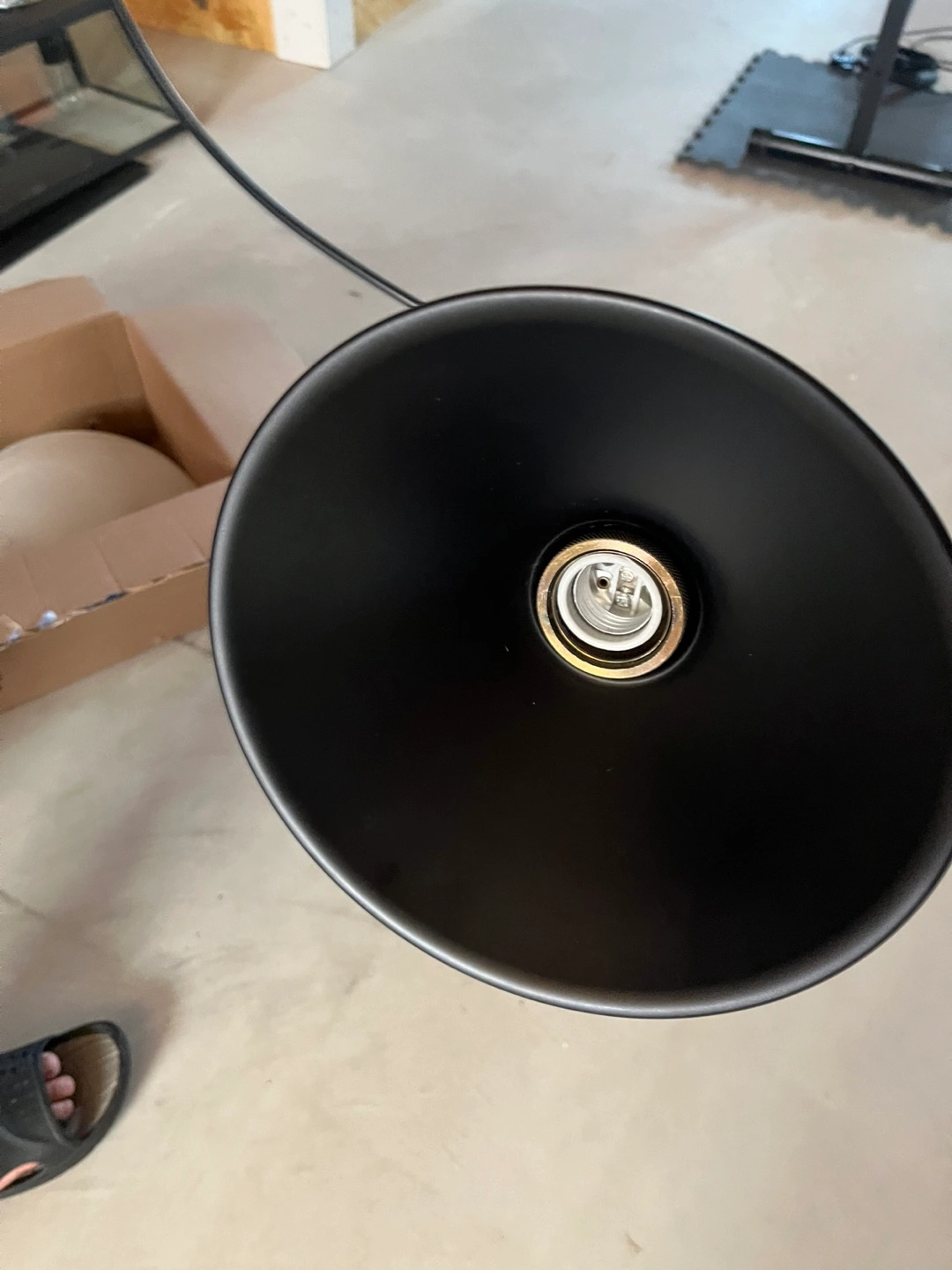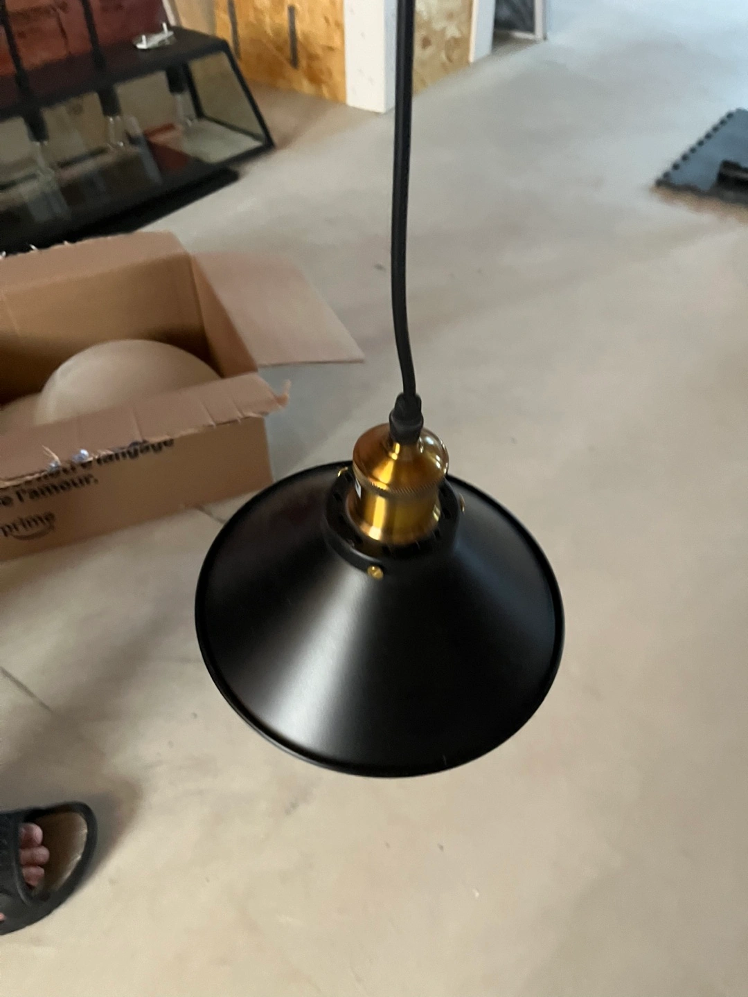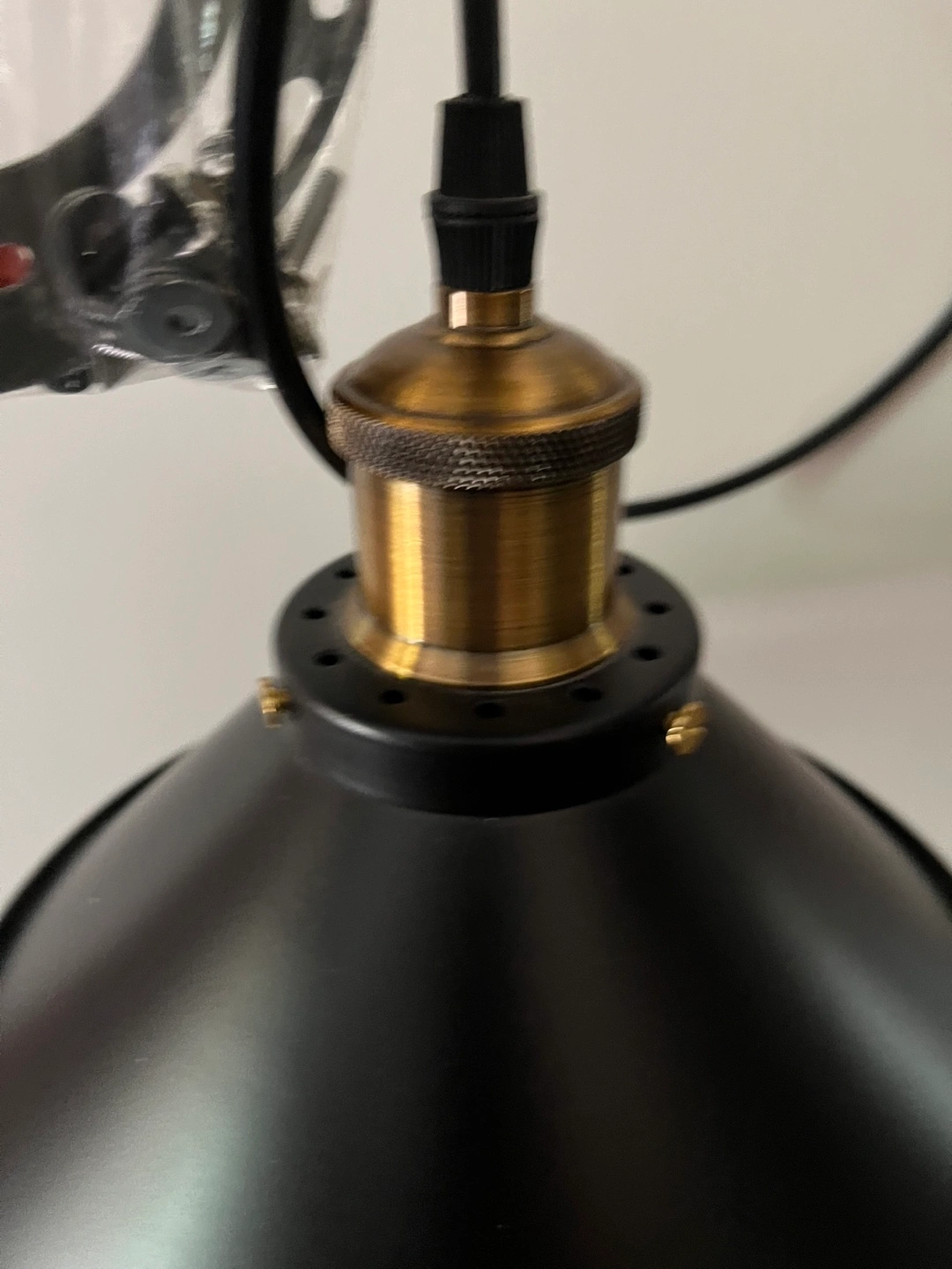 Selling a stylish industrial pendant light featuring a black shade and brass accents. It's in excellent condition - like new