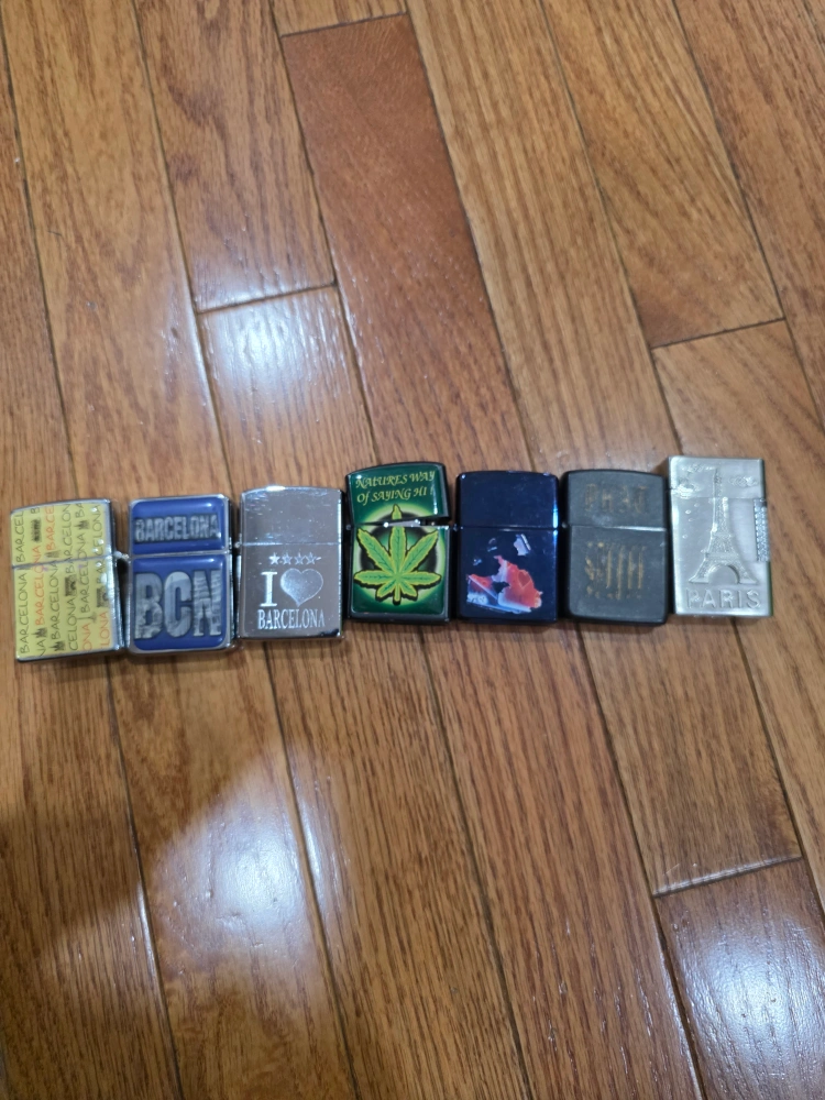 Selling a collection of Zippo lighters with various designs! The designs include Barcelona, Paris, and a nature-themed lighter. They are in used condition, so please see the photos for details.
