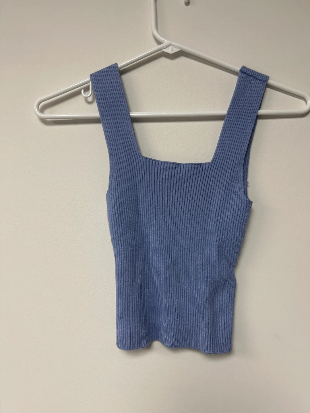 Abercrombie & Fitch ribbed tank top in a lovely blue colour. It's a comfortable and stylish piece for warmer weather. It's made from a stretchy knit fabric for a great fit. This top is perfect for layering or wearing on its own!