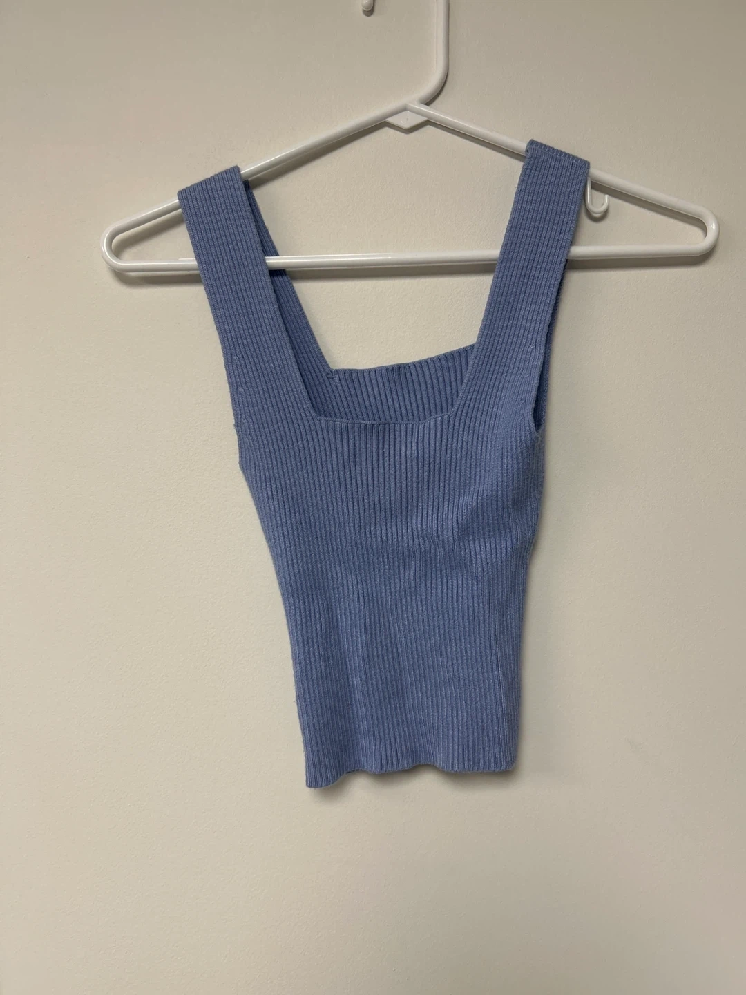 Abercrombie & Fitch ribbed tank top in a lovely blue colour. It's a comfortable and stylish piece for warmer weather. It's made from a stretchy knit fabric for a great fit. This top is perfect for layering or wearing on its own!