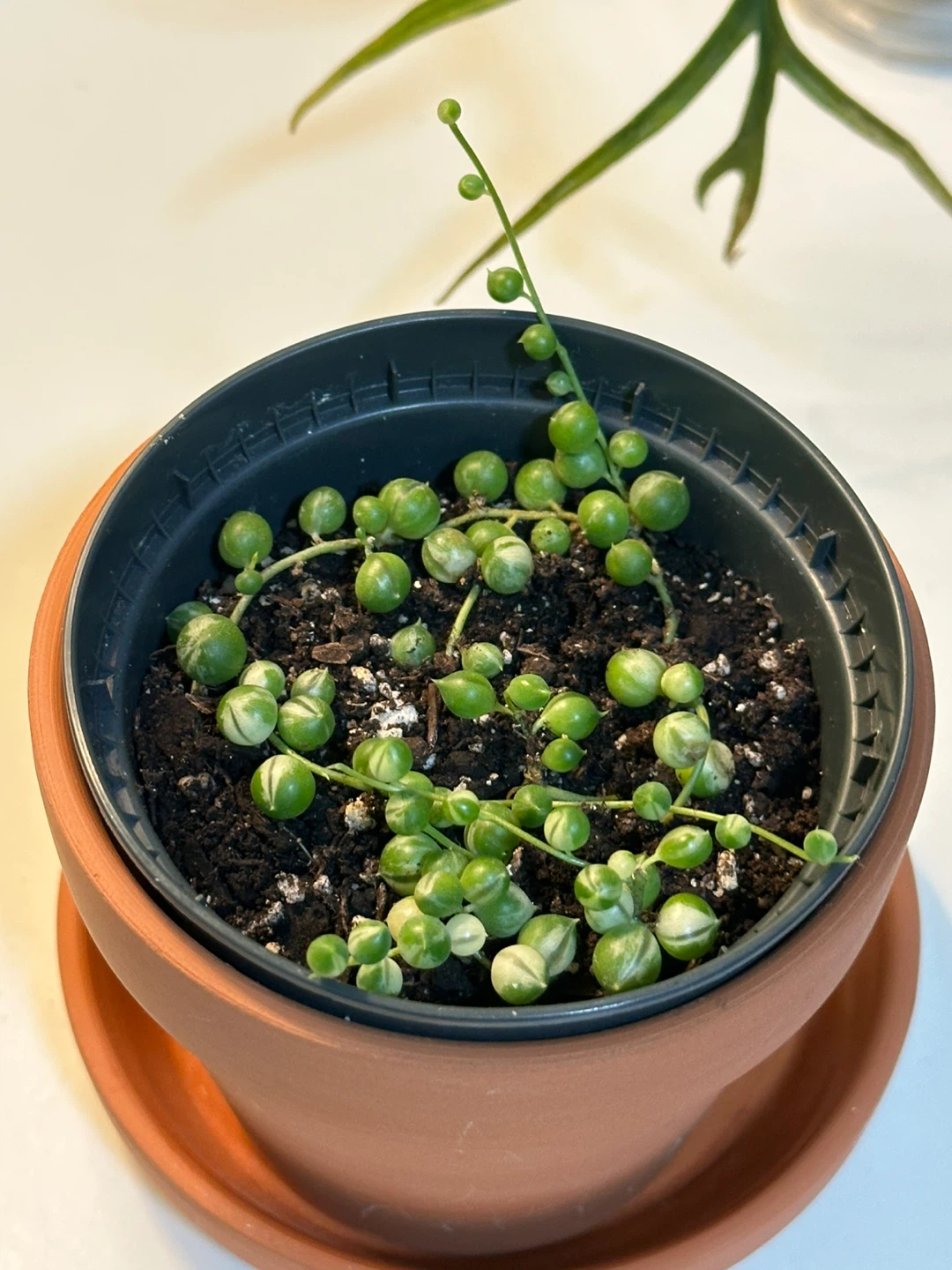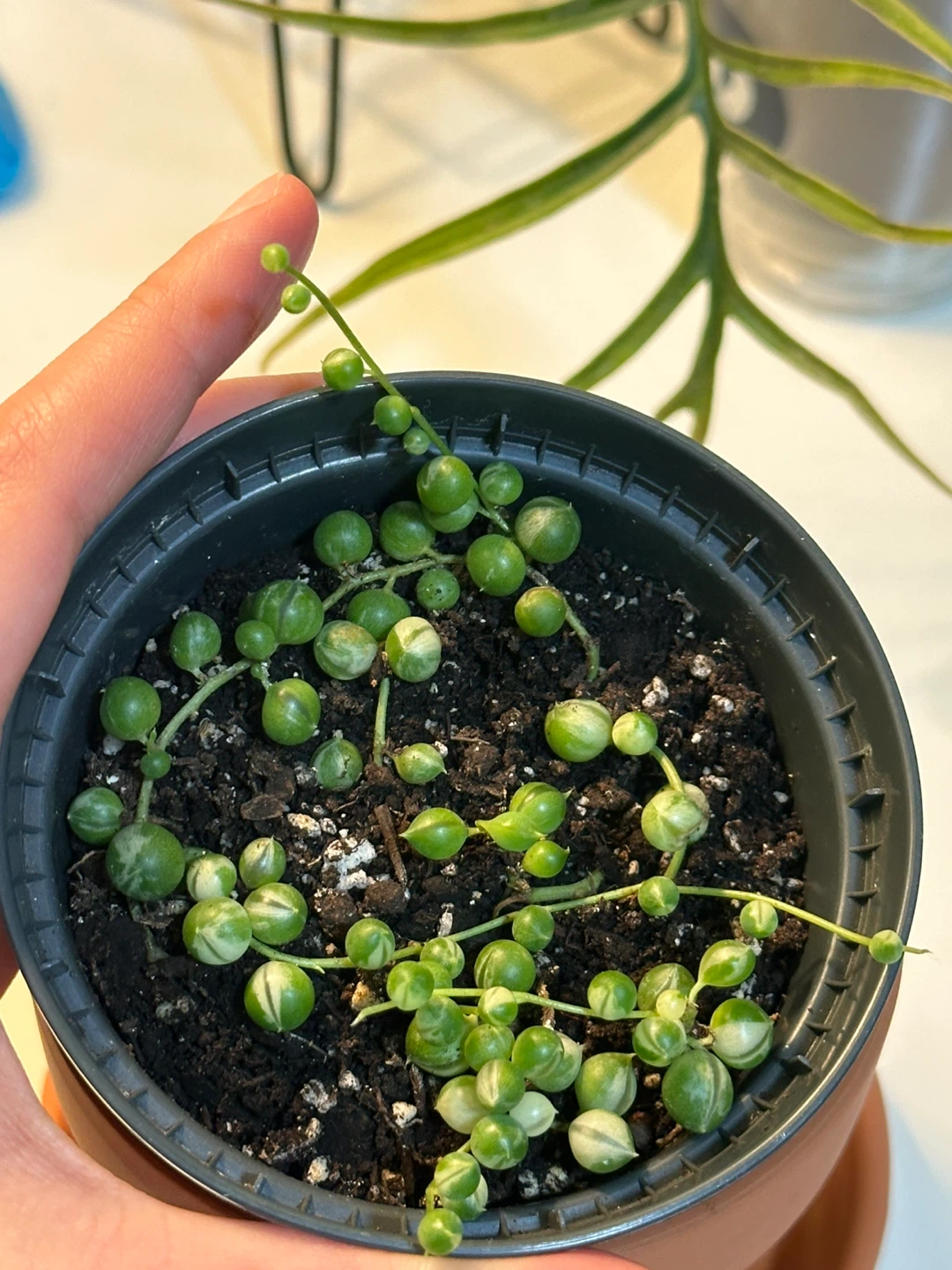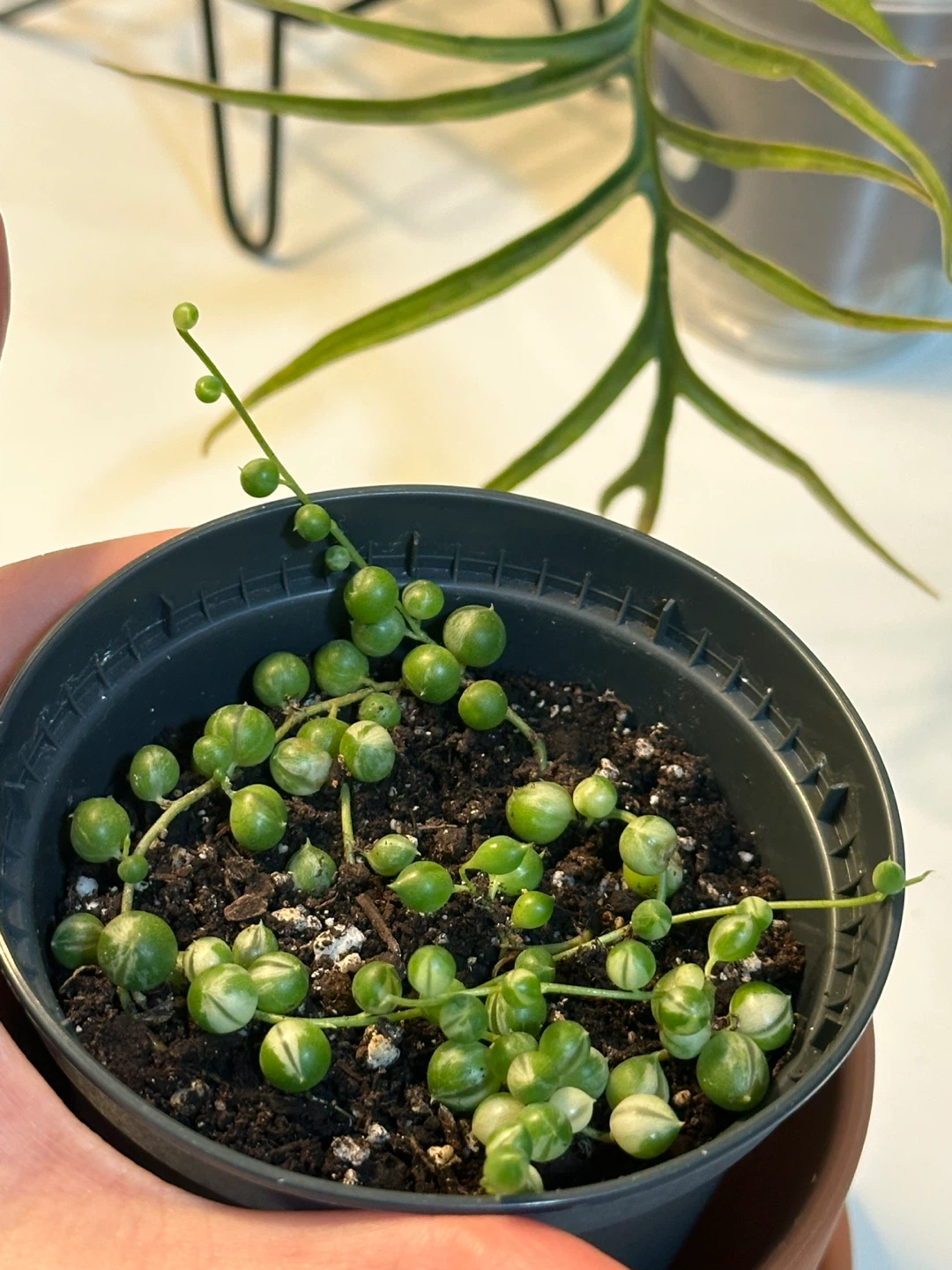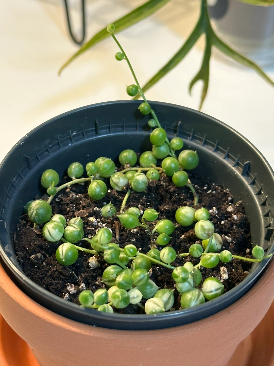 Selling a healthy string of pearls plant! It's a beautiful trailing succulent that's easy to care for and adds a touch of greenery to any space.