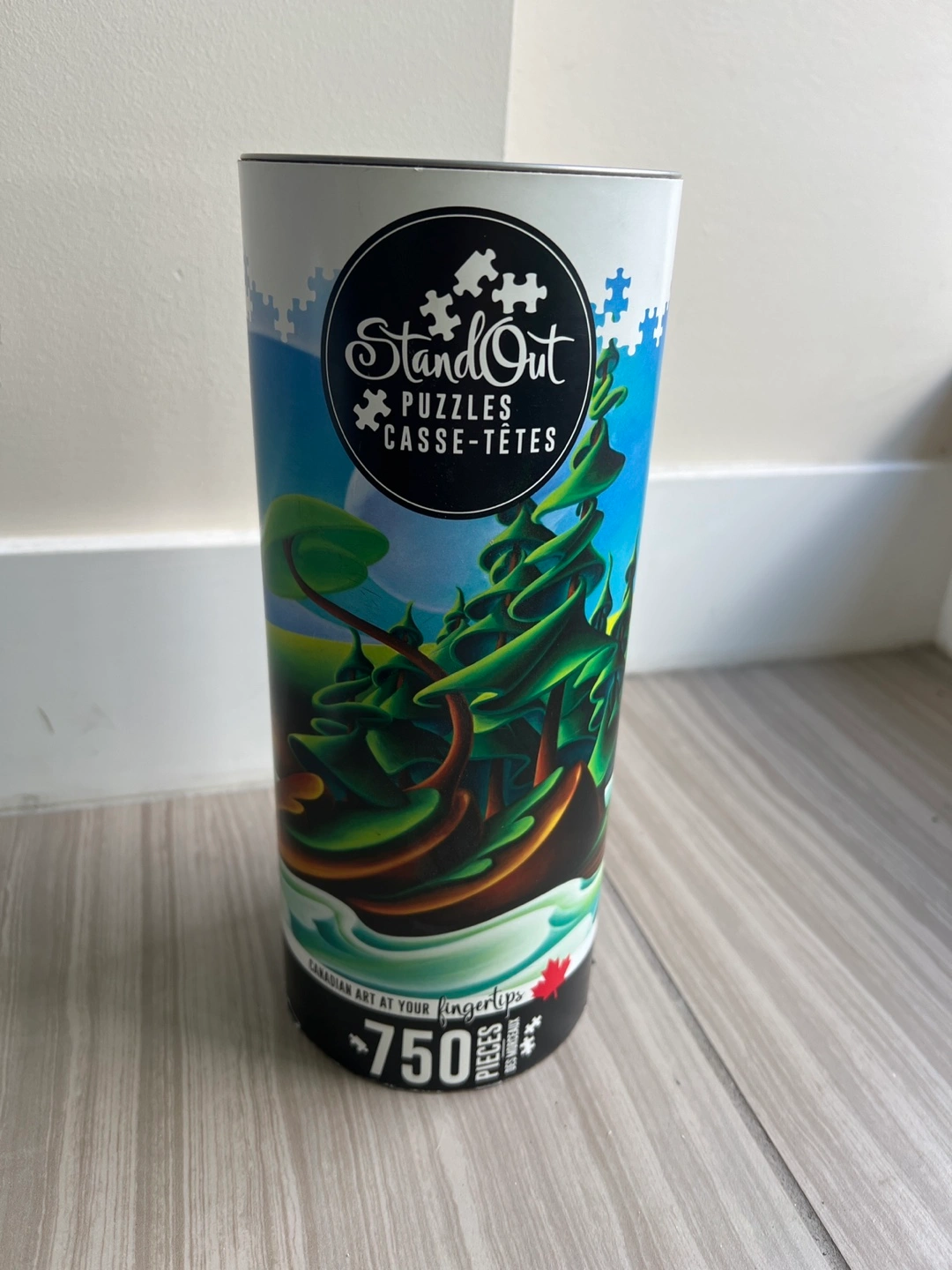I'm selling a StandOut puzzle called Leaving Mayne Island by Dana Irving. It has 750 pieces and features “Canadian art at your fingertips.” The finished size is 24" x 18". Pickup in Kits.