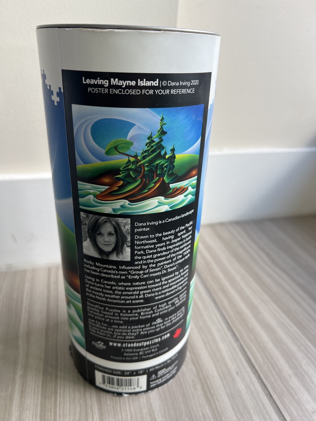 I'm selling a StandOut puzzle called Leaving Mayne Island by Dana Irving. It has 750 pieces and features “Canadian art at your fingertips.” The finished size is 24" x 18". Pickup in Kits.