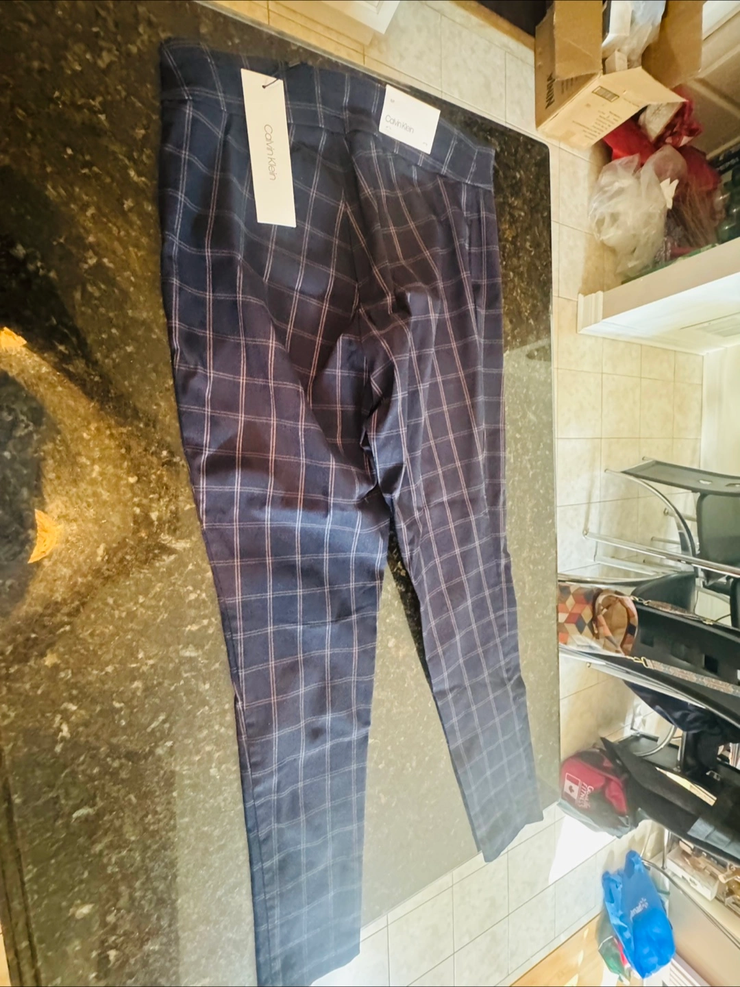 Brand new Calvin Klein plaid pants in size S/P! These pants are a stylish and comfortable addition to any wardrobe. They still have the tags on them. The original price was $74.50